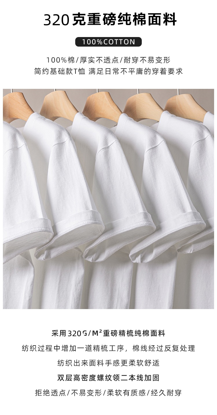 320g 무거운 미국 반소매 티셔츠 두꺼운 불투명 여름 느슨한 플러스 사이즈 코튼 커플 순수한 흰색 반소매 남성과 여성스토어 가기