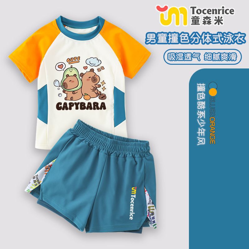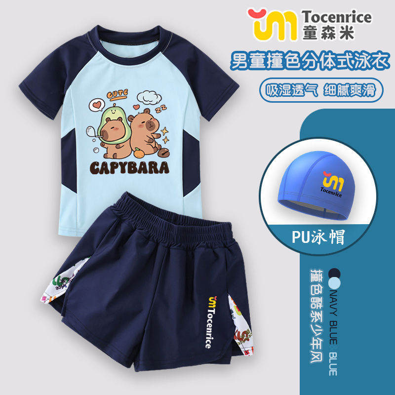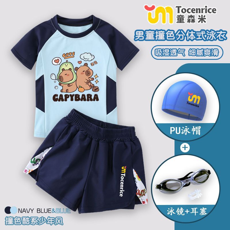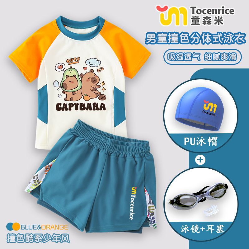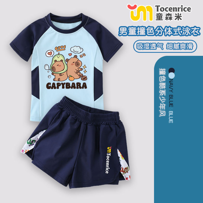 카피 발라 어린이 수영복 소년 2025 새로운 스타일 중대형 소년 수영 세트 분할 퀵 드라이 수영복 세트스토어 가기