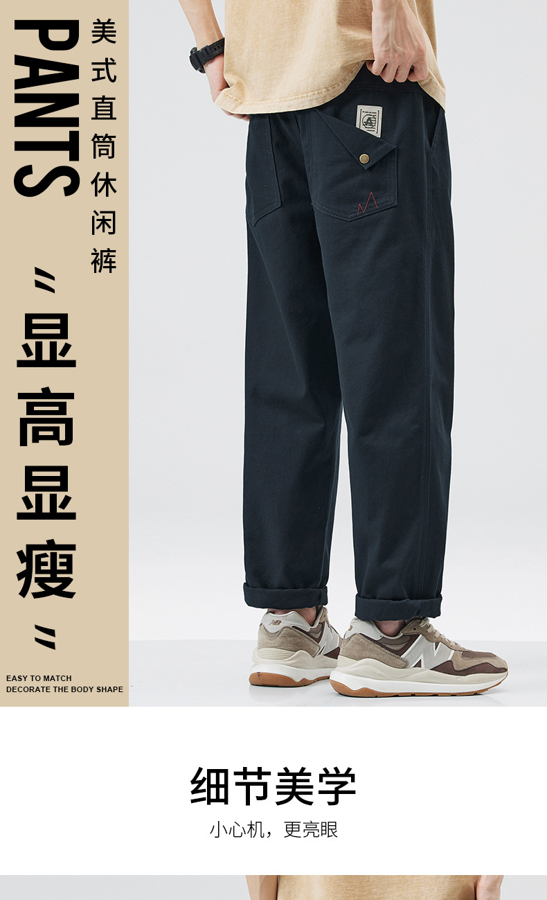 봄면 오버홀 남성 트렌디 브랜드 느슨한 스트레이트 트렌디 브랜드 2025 봄과 가을 새로운 미국 캐주얼 긴 바지스토어 가기