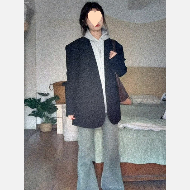 블랙 세트 재킷 여성 하이 엔드 센스 2024 봄과 가을 새로운 한국 캐주얼 느슨한 프로필 세트스토어 가기