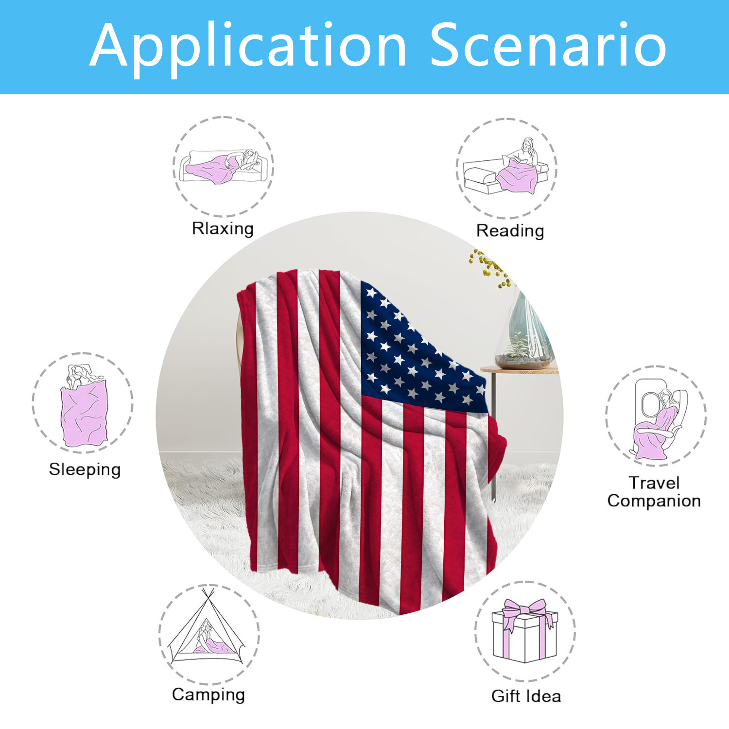 재고 국경 간 미국 담요 두꺼운 플란넬 디지털 인쇄 낮잠 담요 따뜻한 담요 도매스토어 가기