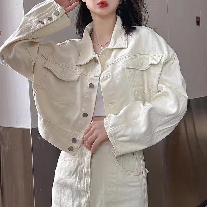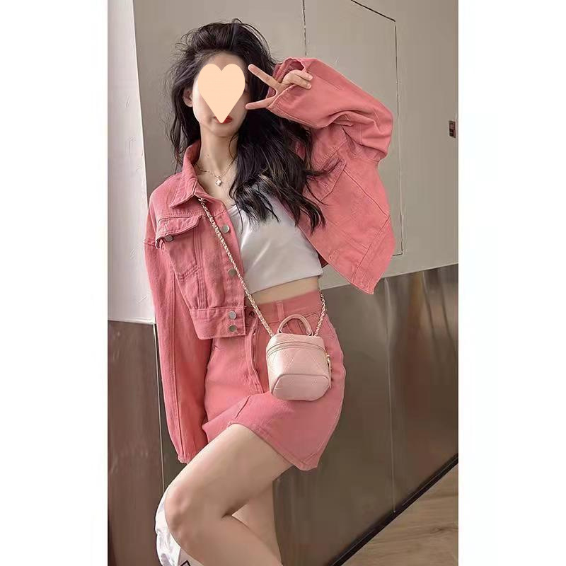 봄 2024 데님 세트 여성용 짧은 카디건 재킷 코트 높은 허리 스커트 투피스 세트스토어 가기