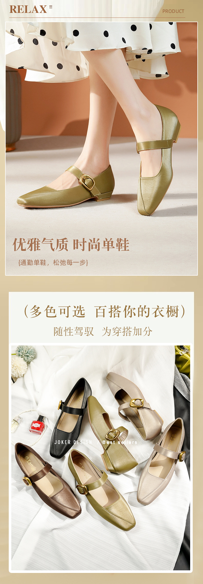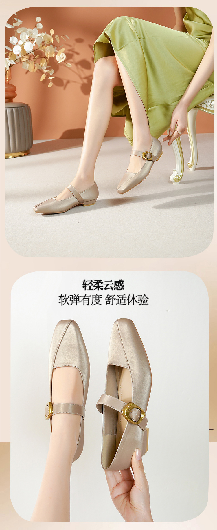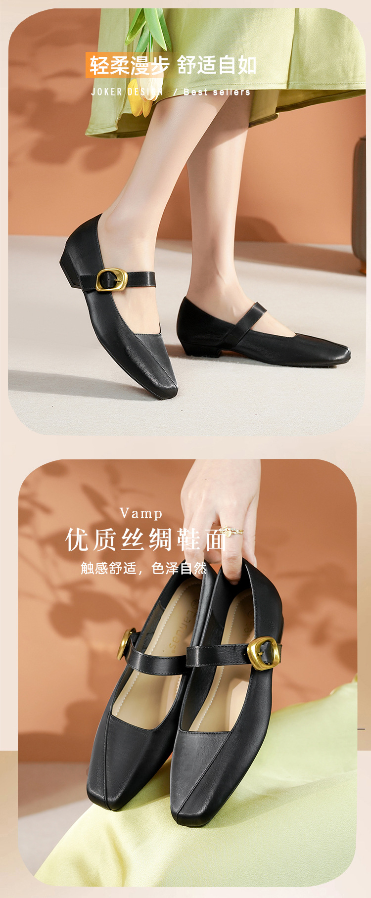 2025 봄 새 메리 제인 신발 여성 한 단어 버클 스퀘어 토 소프트 가죽 싱글 레이어 신발 레트로 로우 힐 패션 신발 멀티 컬러