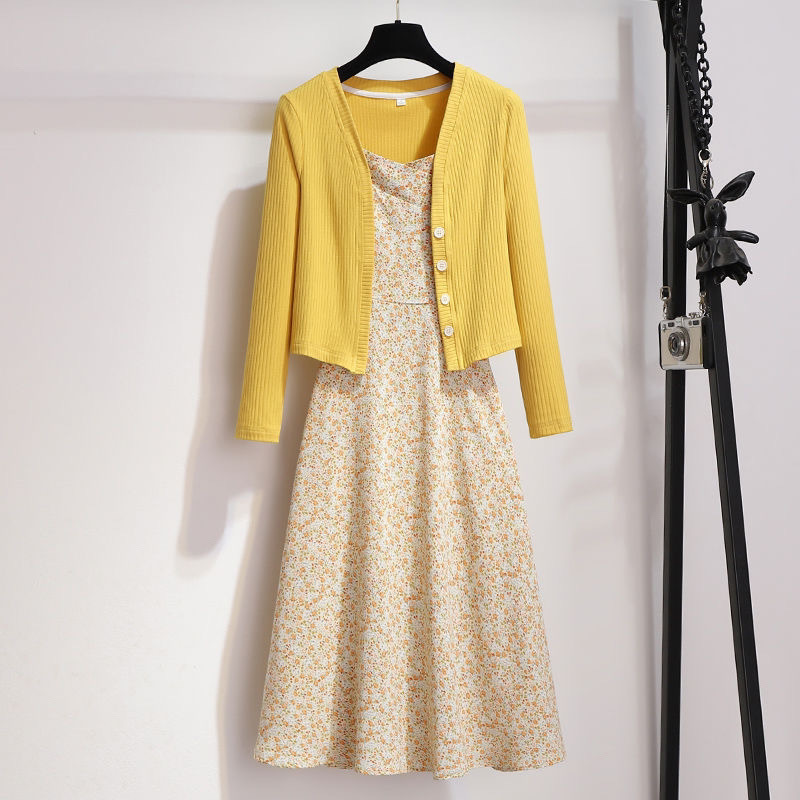 • 노란색 가디건 + 노란색 원피스 [투피스세트]