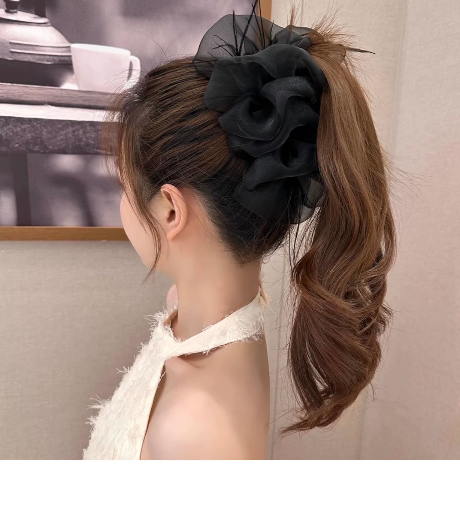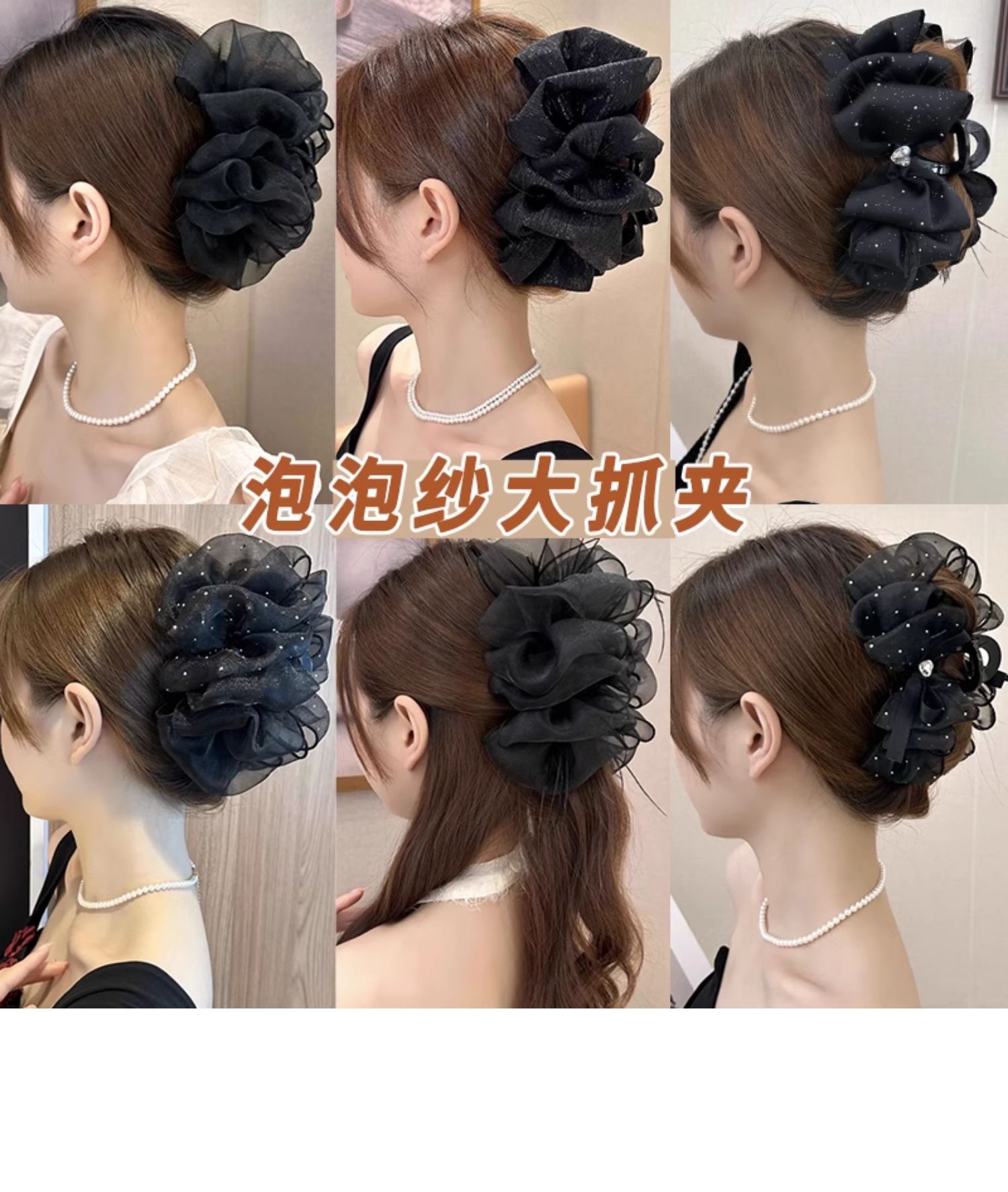 검은 깃털 버블 메쉬 잡아 클립 여성용 한국 우아한 활 머리 상어 클립 헤드웨어스토어 가기