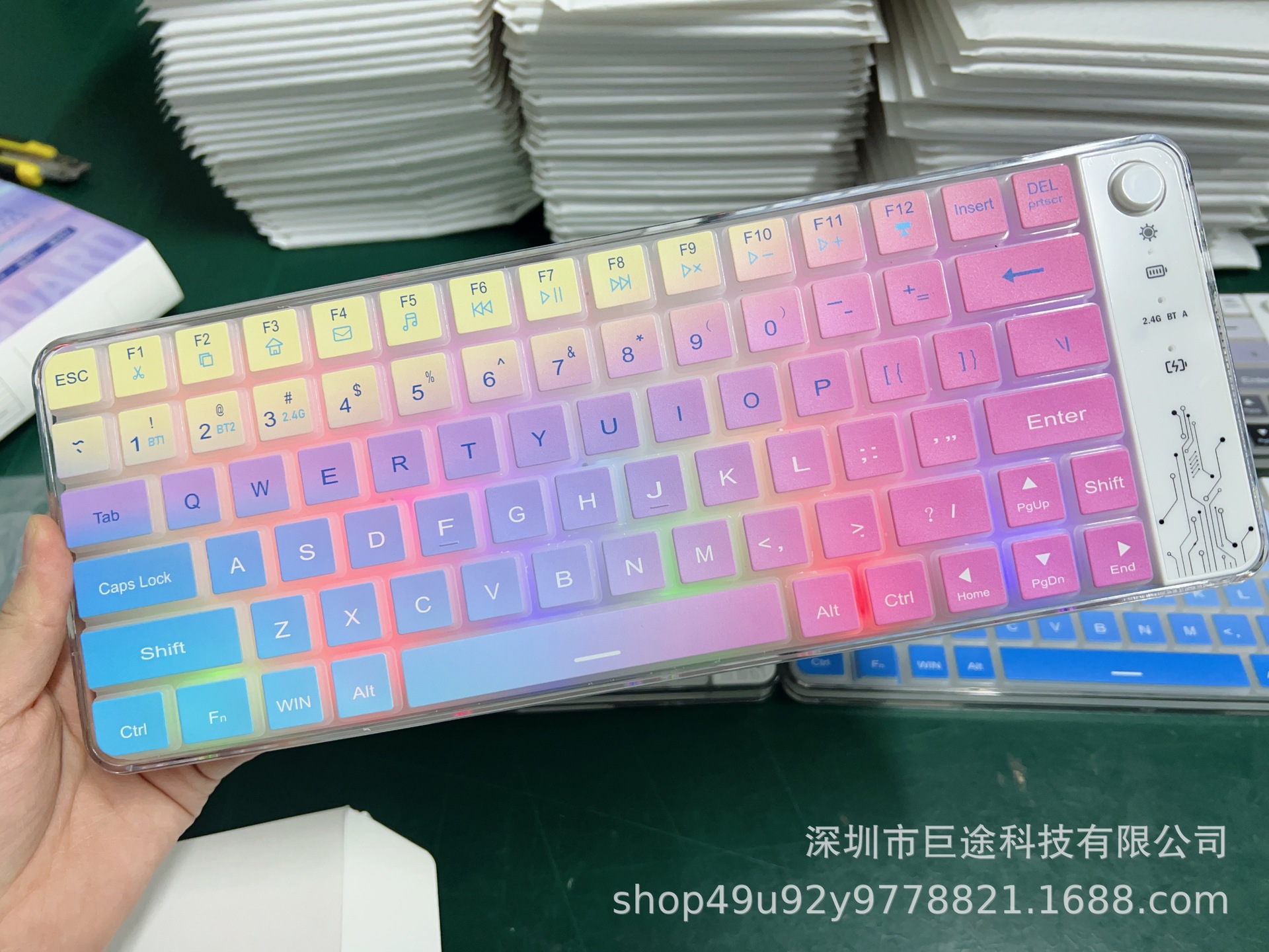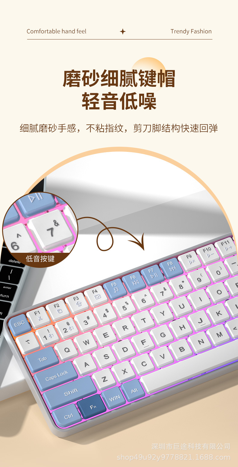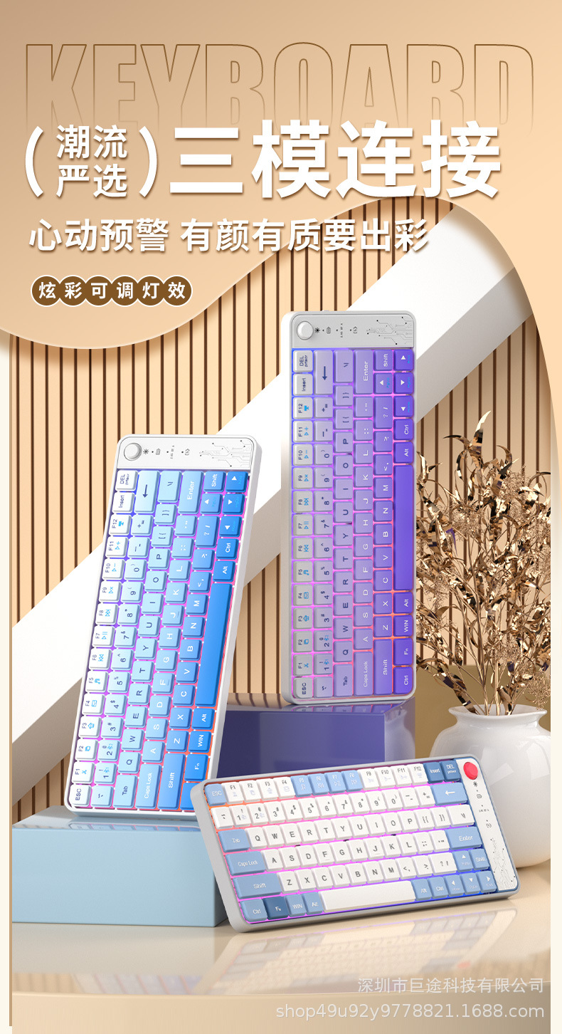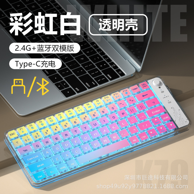 국경 간 폭발 충전식 무선 블루투스 듀얼 모드 키보드 RGB 음소거 사무실 게임 노트북 태블릿스토어 가기