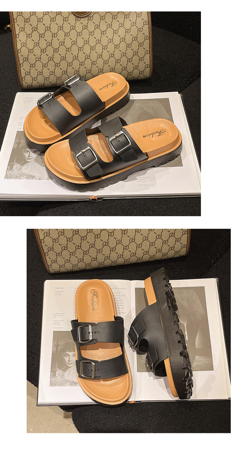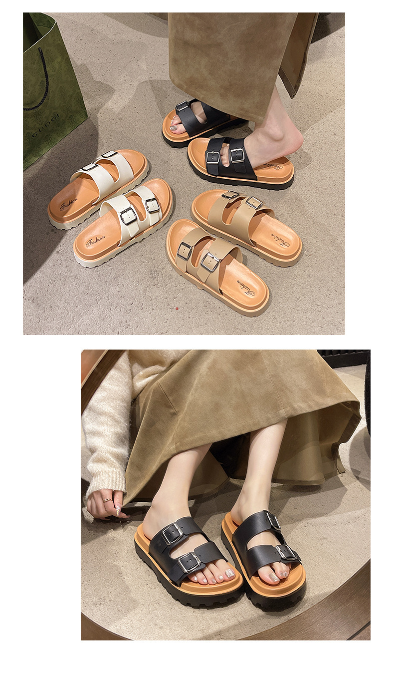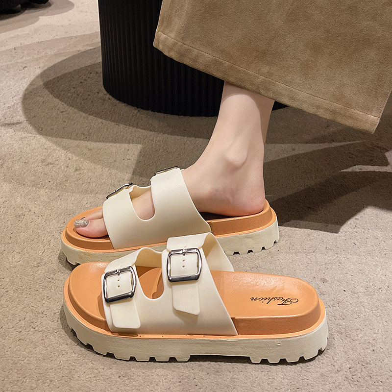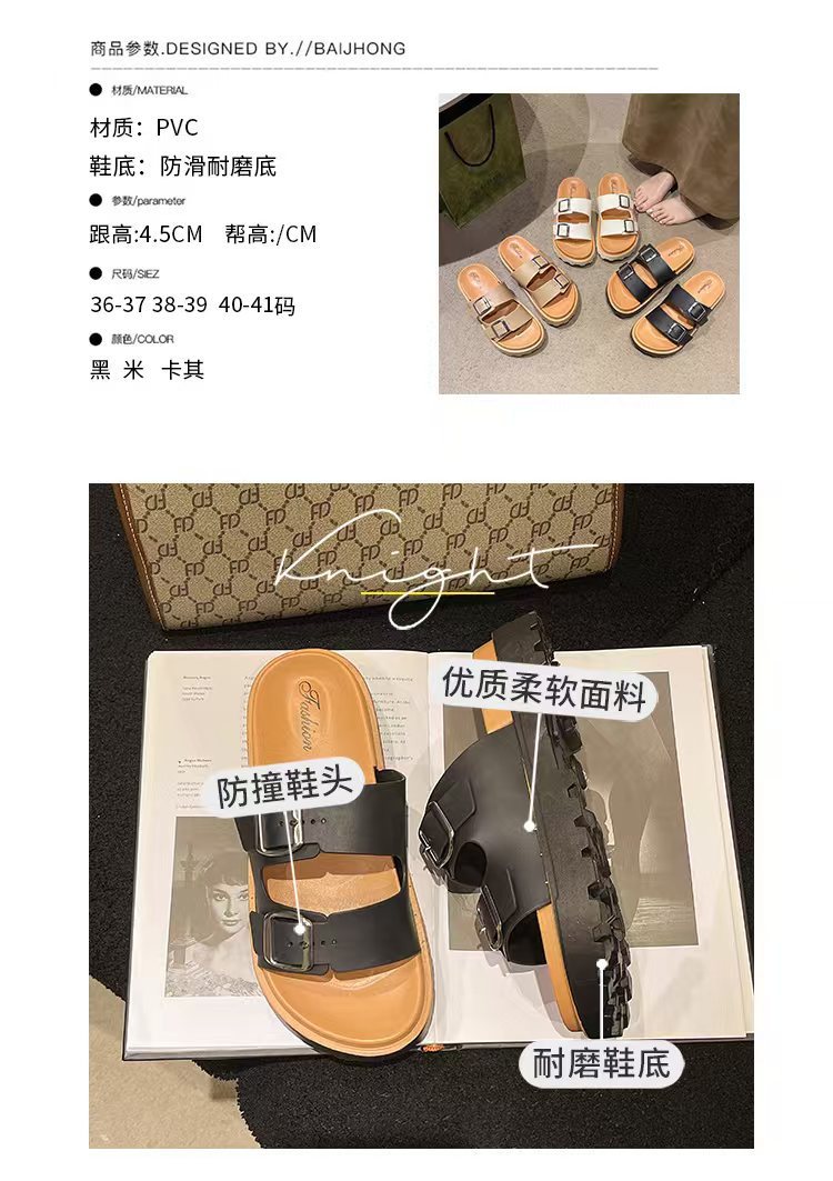 샌들 여성용 2024 년 새 여름 버켄 탈 신발 플랫 캐주얼 게으른 슬립 온 두꺼운 밑바닥 미끄럼 방지 샌들
