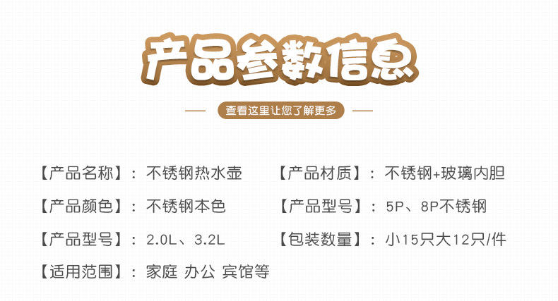 스테인레스 스틸 주전자, 상업용 물병, 가정용 주전자, 보온병, 구식 보온병, 보온병, 유리 라이너