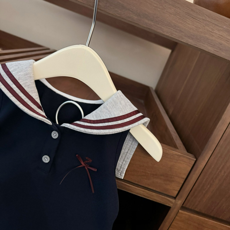 여자 해군 칼라 원피스 여름 2025 새로운 도착 아기 소녀 치마 우아한 주름 치마 대학 스타일 JK 여름 원피스