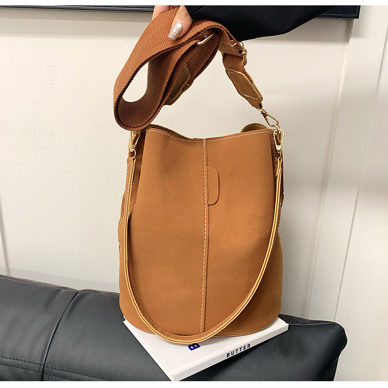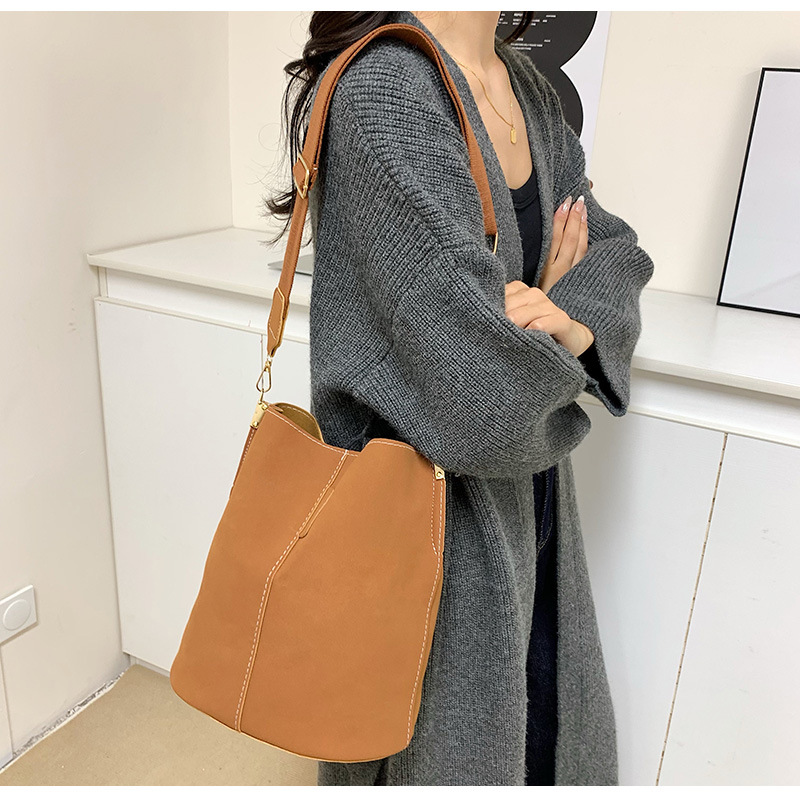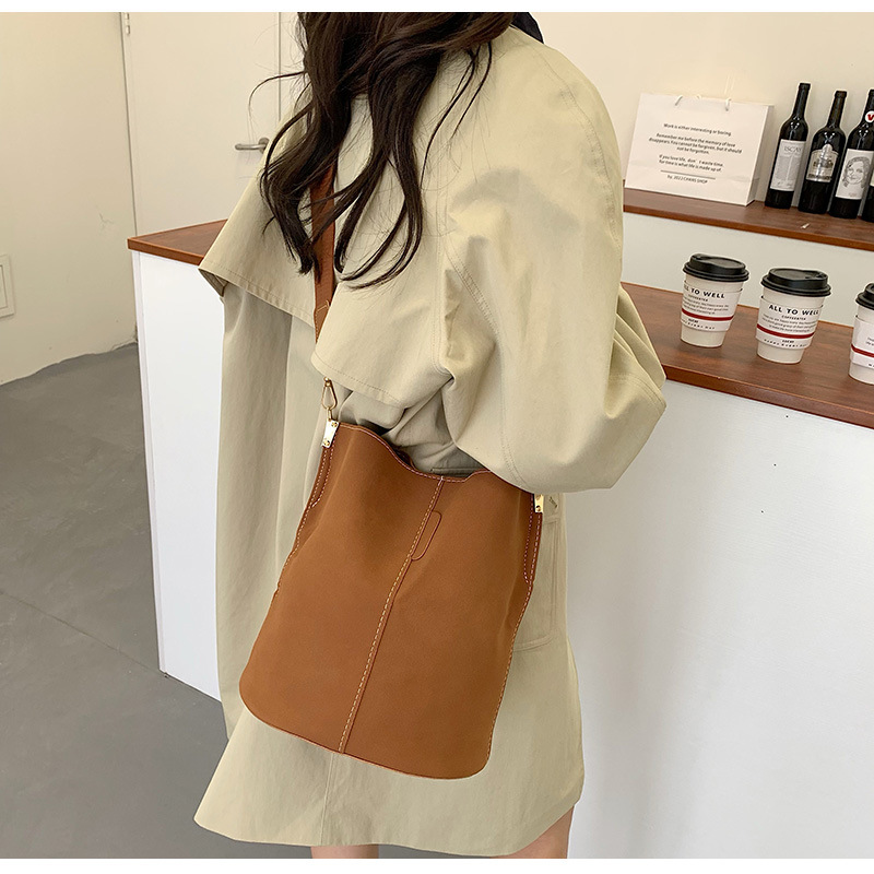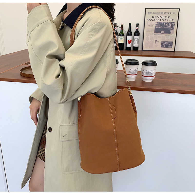 간단한 캐주얼 버킷 백 여자 2025 새로운 레트로 유럽과 미국식 크로스 바디 백 유행 한국식 올 매치 숄더 백