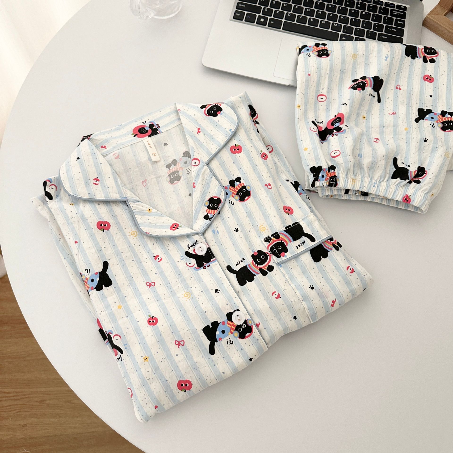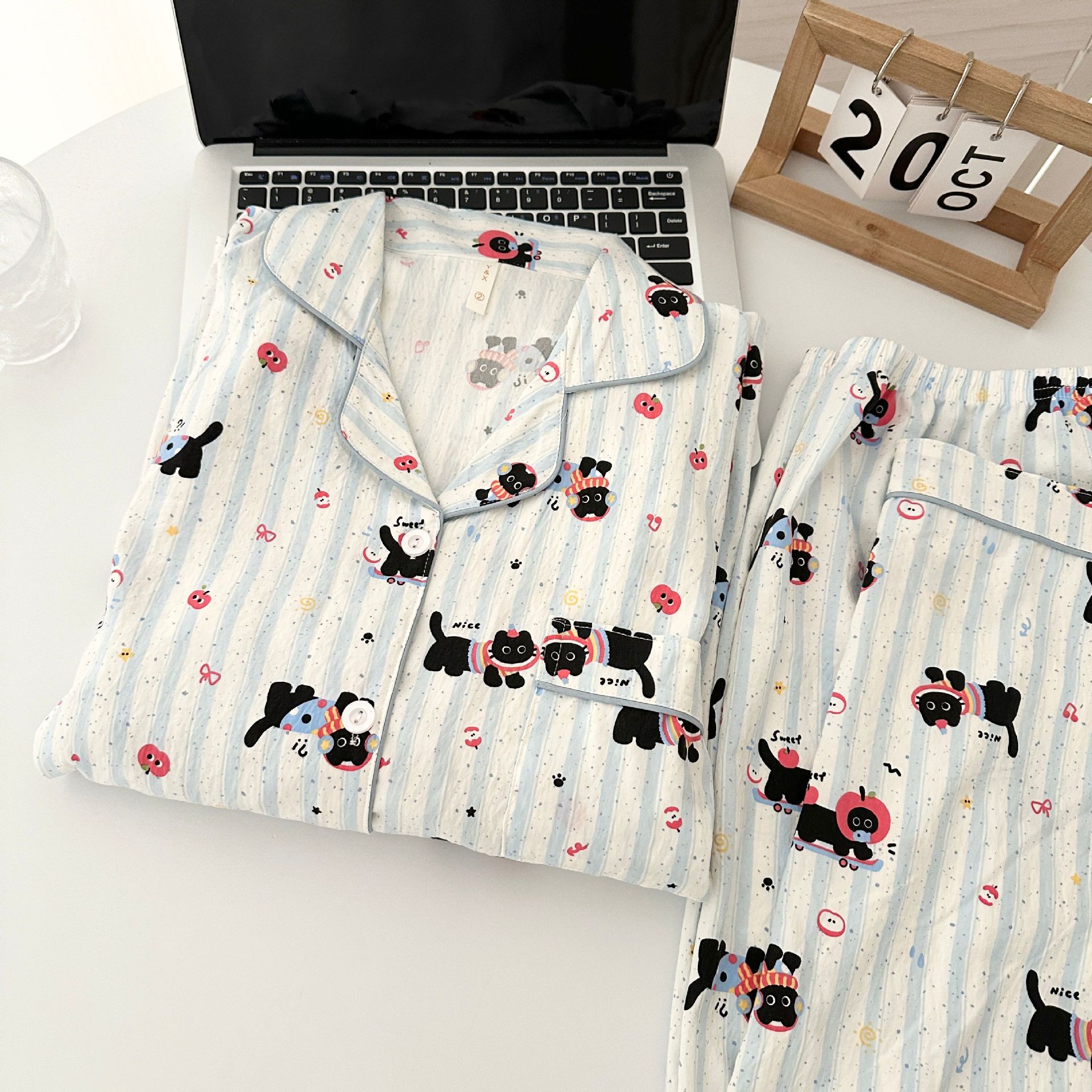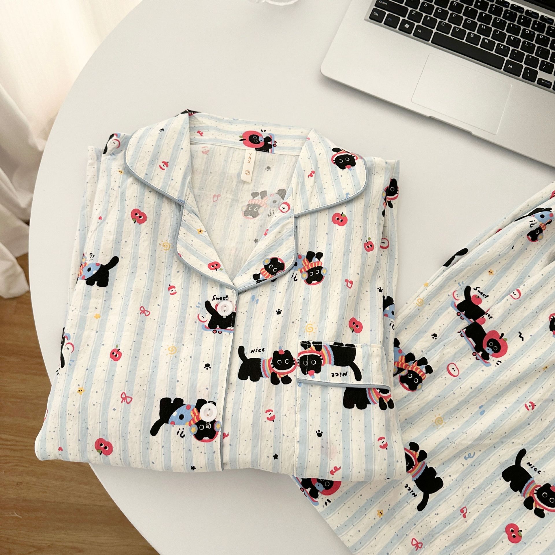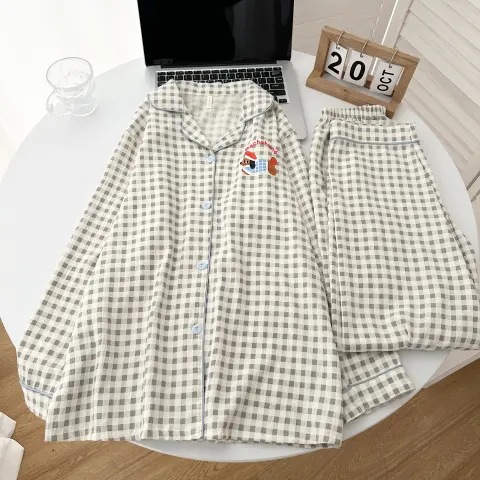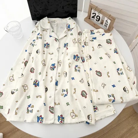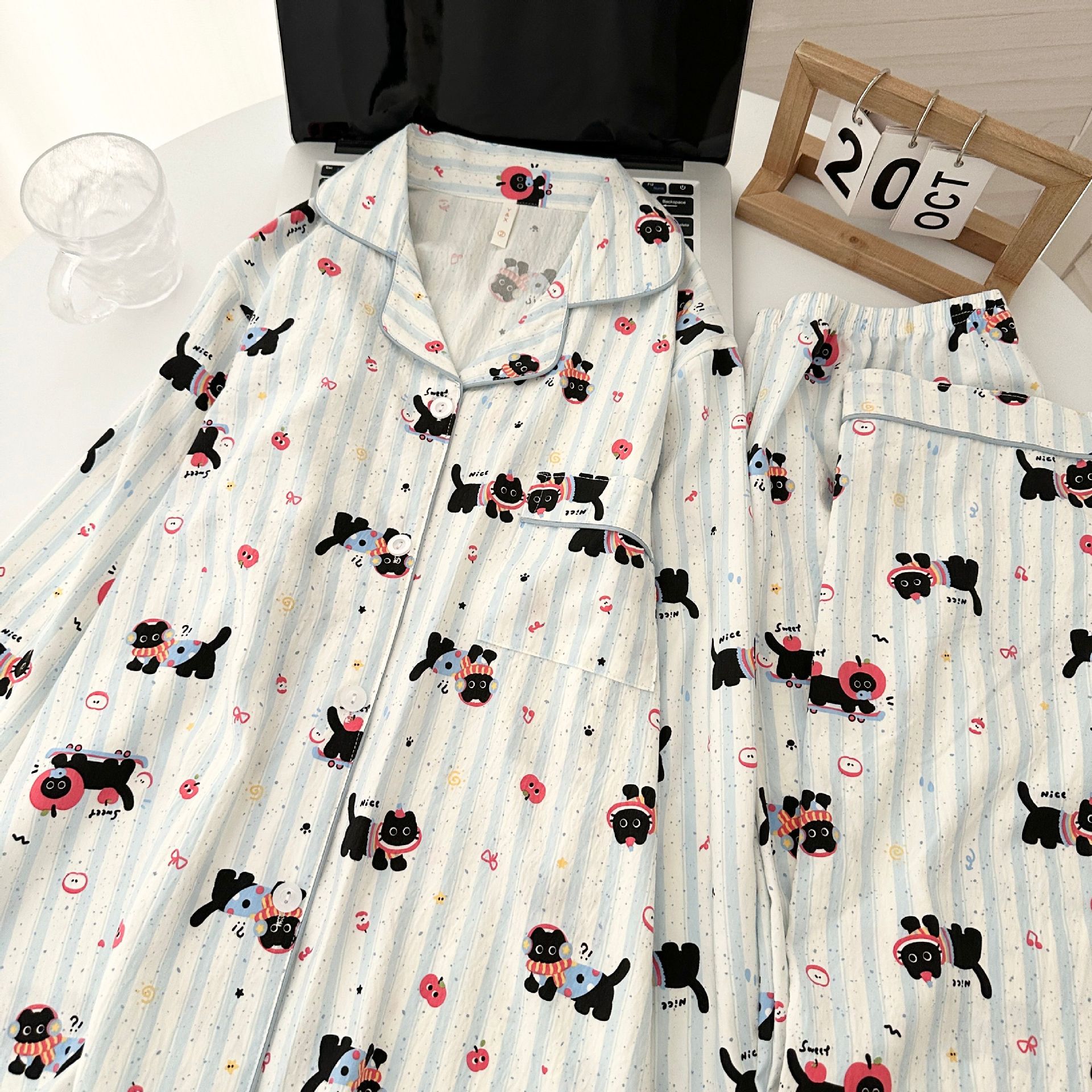 봄과 가을 새로운 구름 면 잠옷 한국 긴 소매 잠옷 여성 달콤한 만화 귀여운 학생 홈 옷
