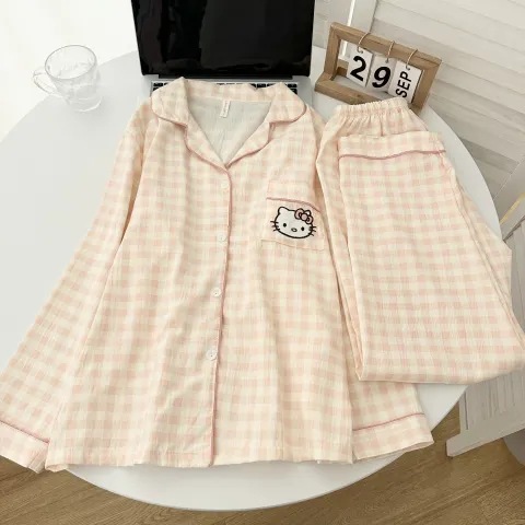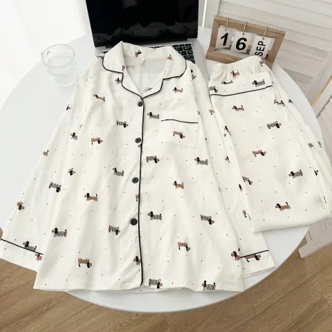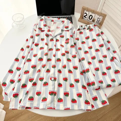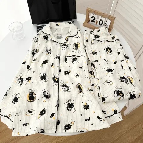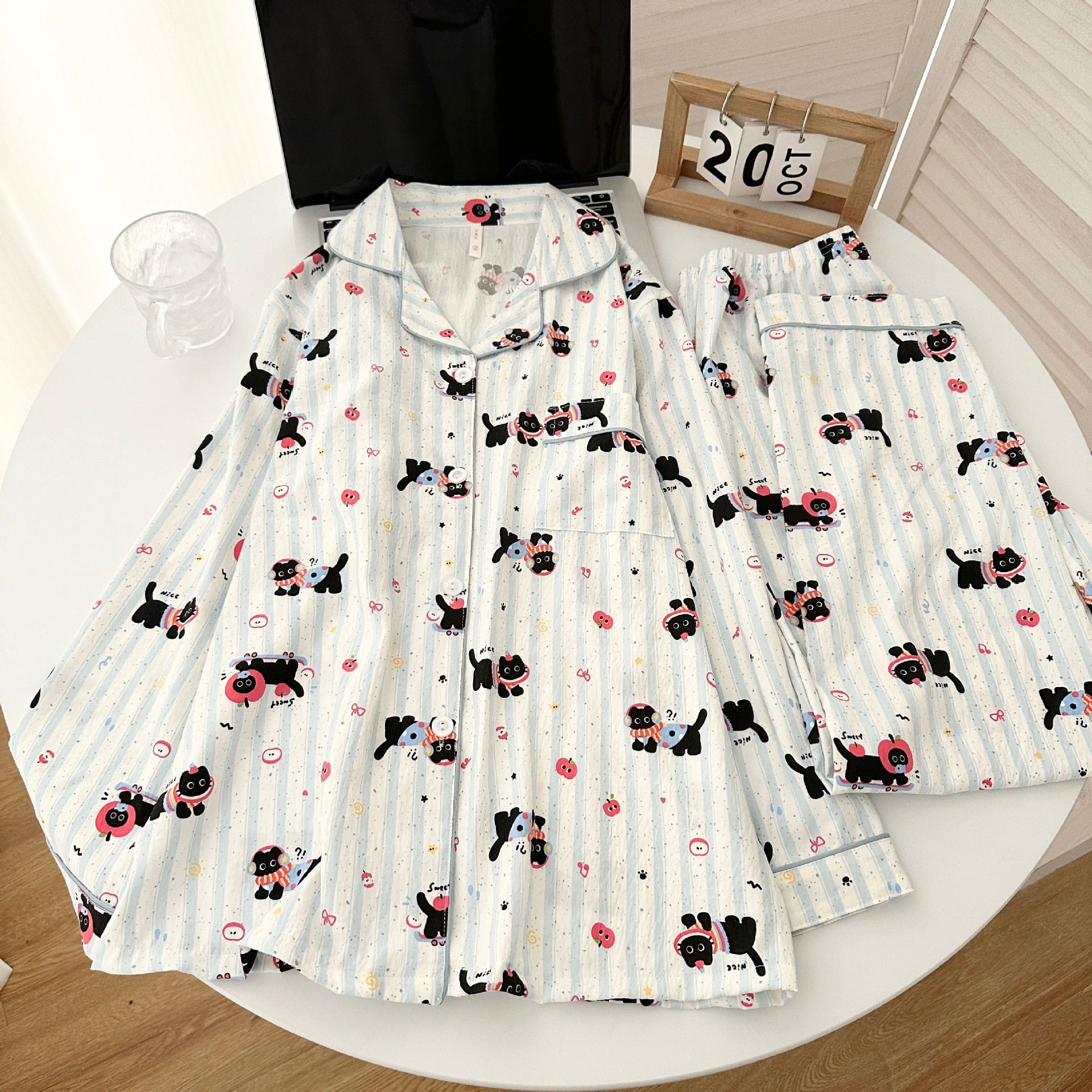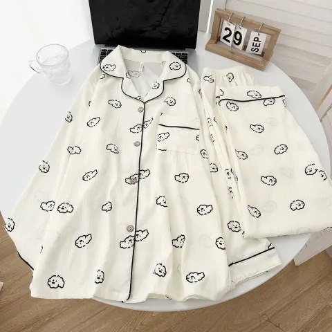 봄과 가을 새로운 구름 면 잠옷 한국 긴 소매 잠옷 여성 달콤한 만화 귀여운 학생 홈 옷스토어 가기
