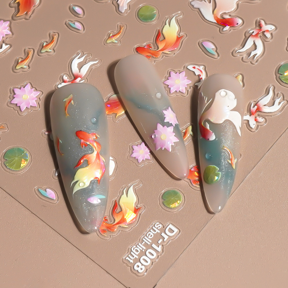 Redanco 새로운 5D 릴리프 폭발 잉어 쉘 라이트 네일 스티커 스테레오 접착 네일 스티커 Dr-1008