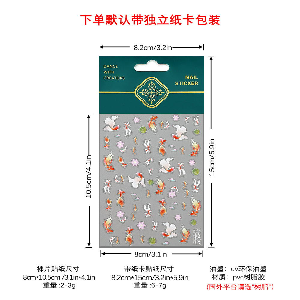 Redanco 새로운 5D 릴리프 폭발 잉어 쉘 라이트 네일 스티커 스테레오 접착 네일 스티커 Dr-1008스토어 가기