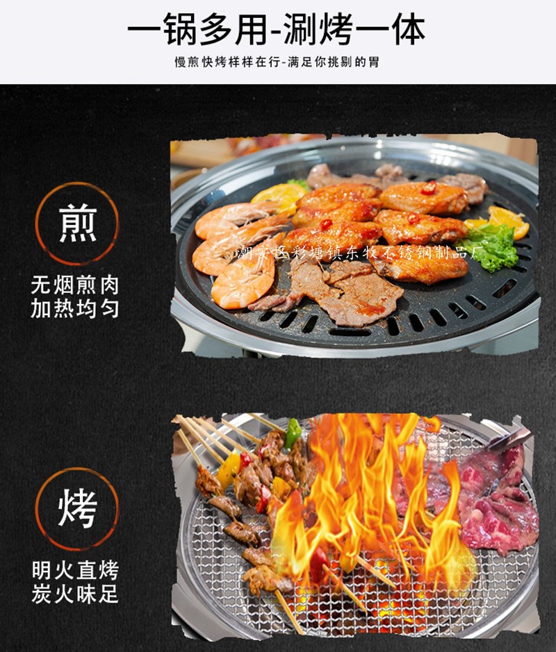 跨境不锈钢韩式木炭烤炉商用嵌入式不锈钢烤肉炉户外便携碳烤炉