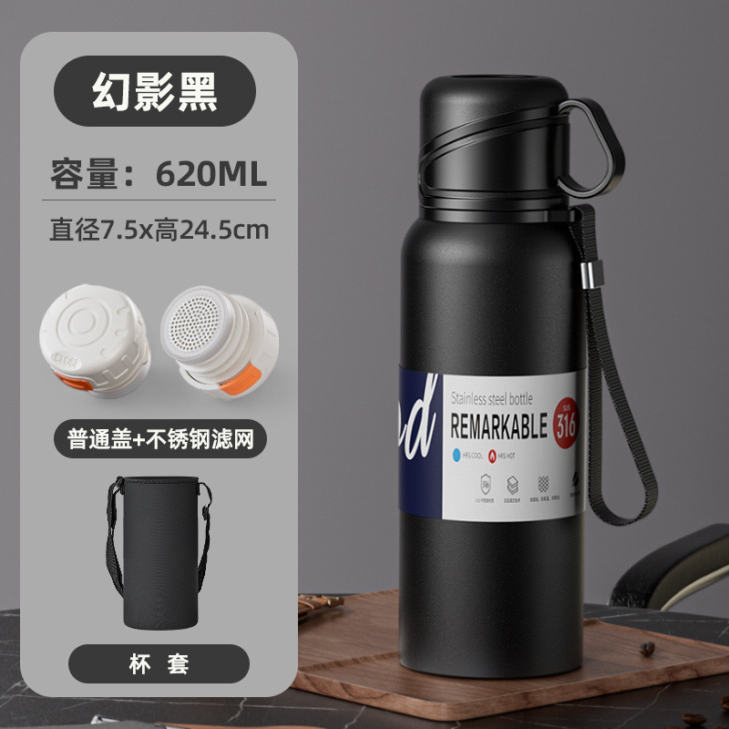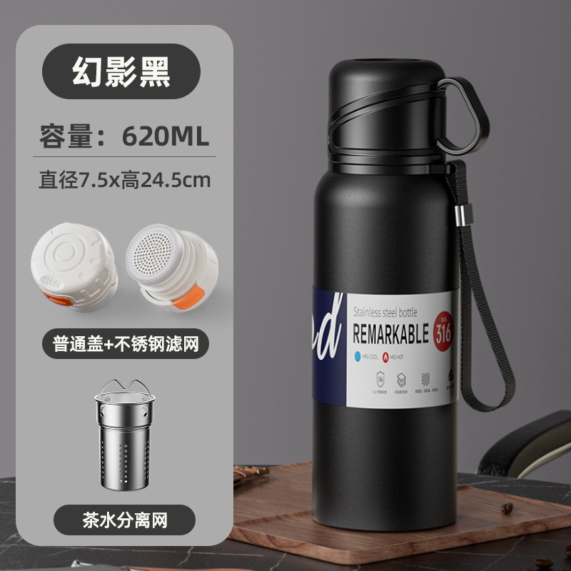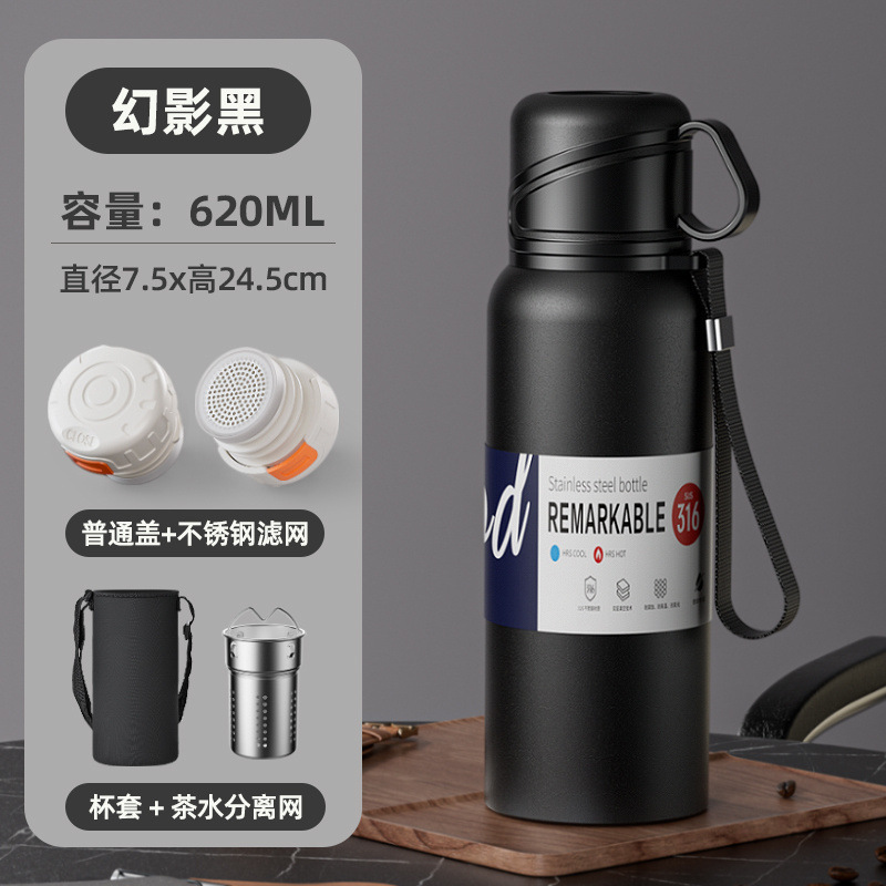 대형 용량 더블 뚜껑 보온병 컵 316 주전자 휴대용 자동차 야외 티 컵을 분리하는 스테인레스 스틸 차스토어 가기