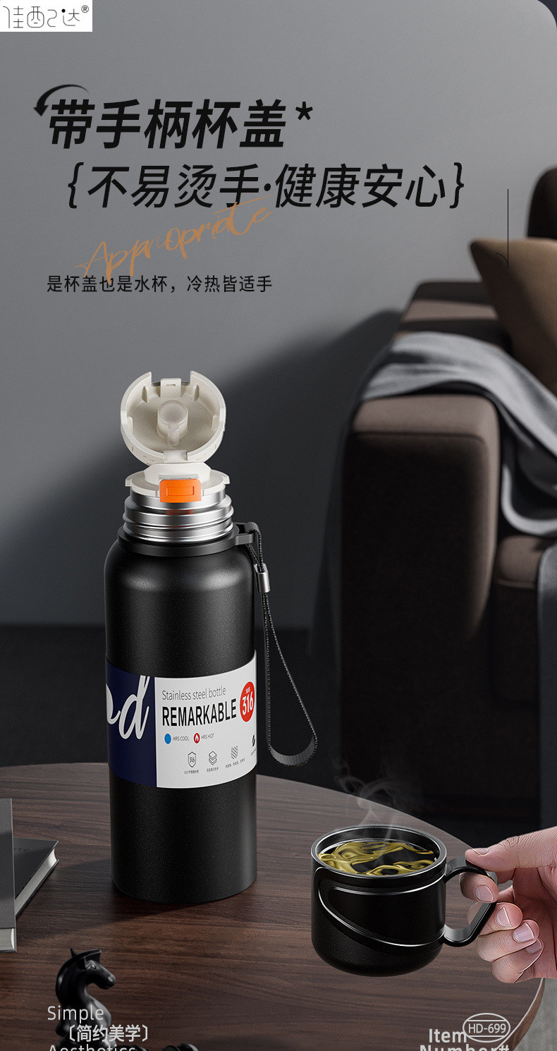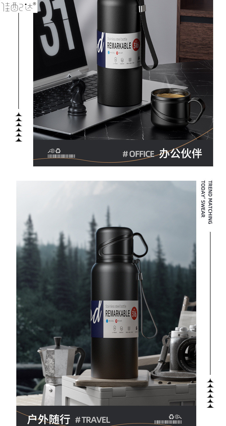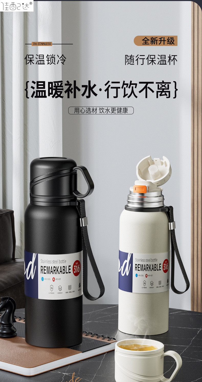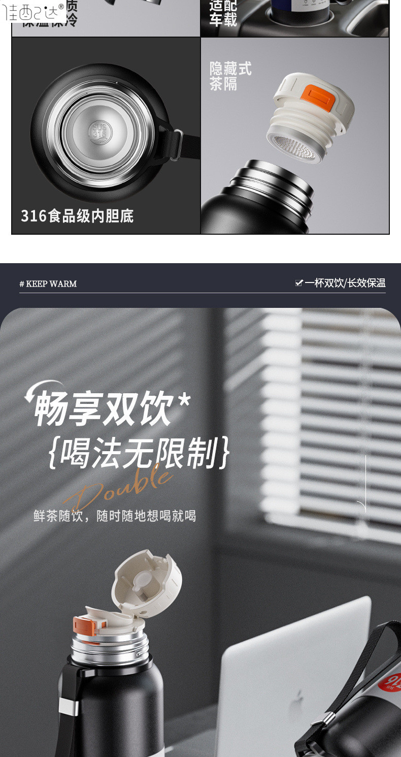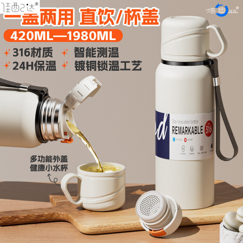 대형 용량 더블 뚜껑 보온병 컵 316 주전자 휴대용 자동차 야외 티 컵을 분리하는 스테인레스 스틸 차
