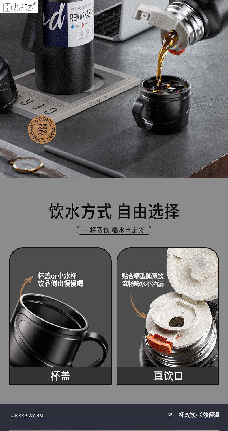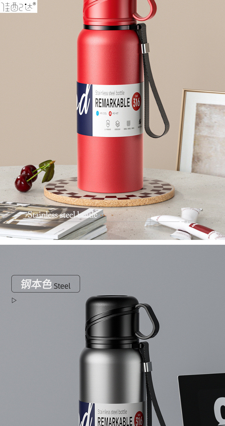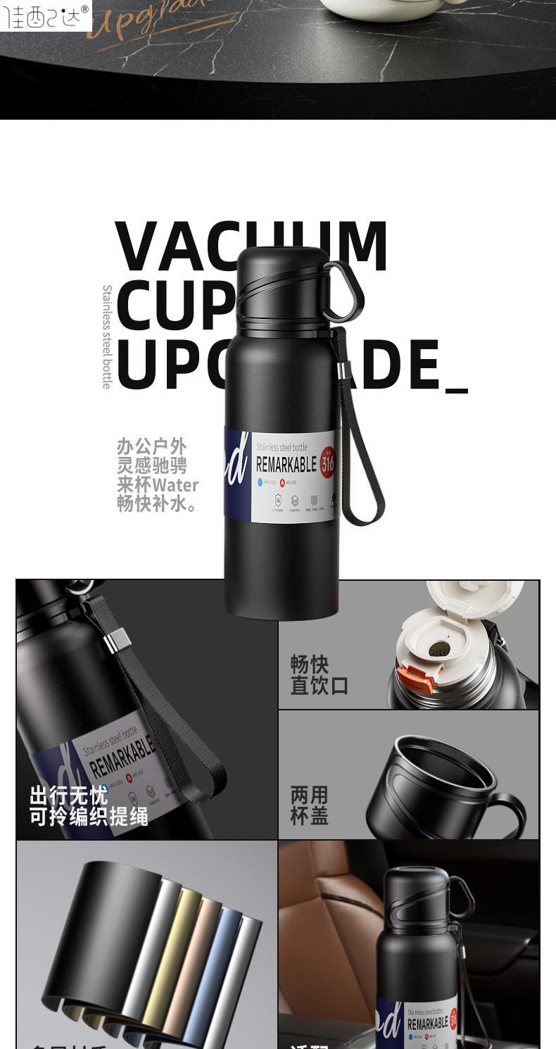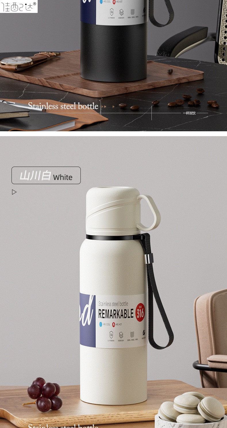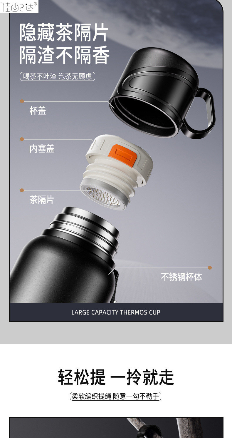 대형 용량 더블 뚜껑 보온병 컵 316 주전자 휴대용 자동차 야외 티 컵을 분리하는 스테인레스 스틸 차