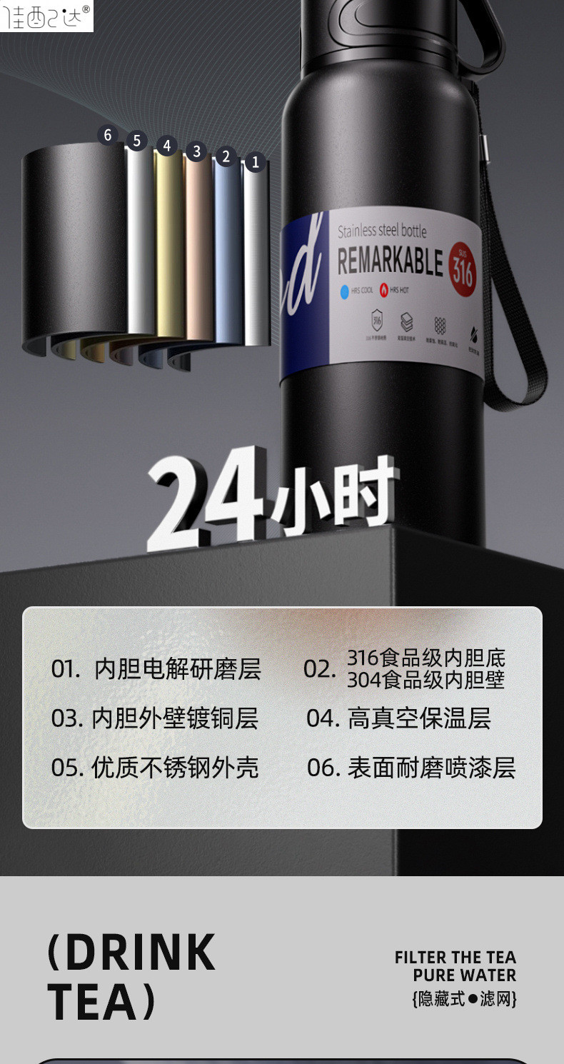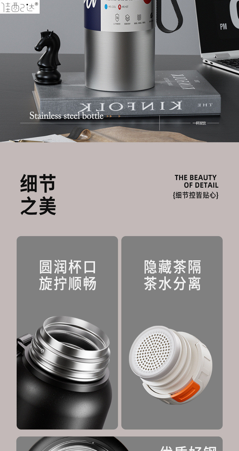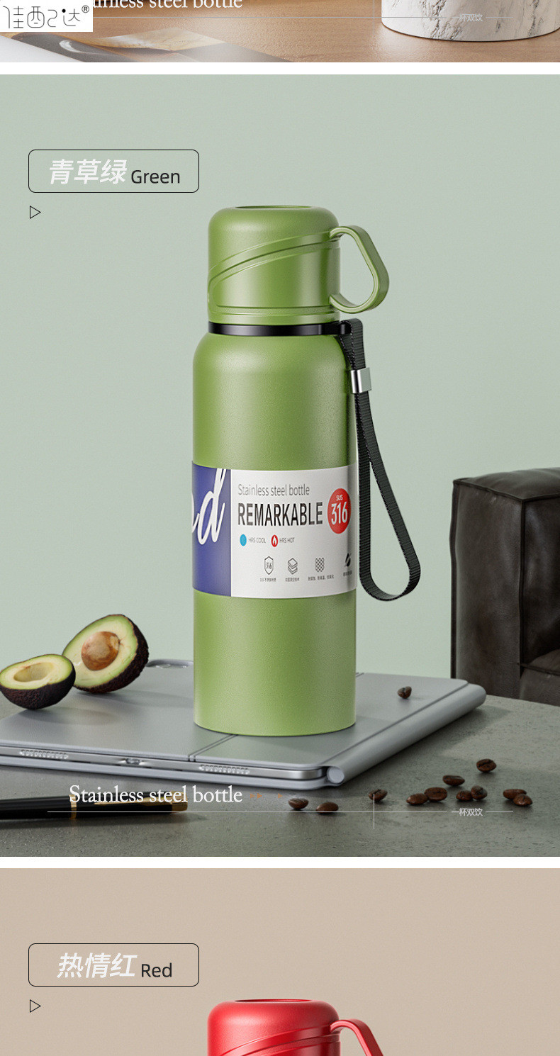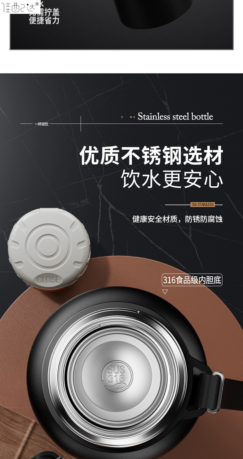 대형 용량 더블 뚜껑 보온병 컵 316 주전자 휴대용 자동차 야외 티 컵을 분리하는 스테인레스 스틸 차