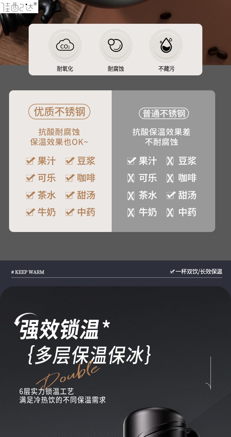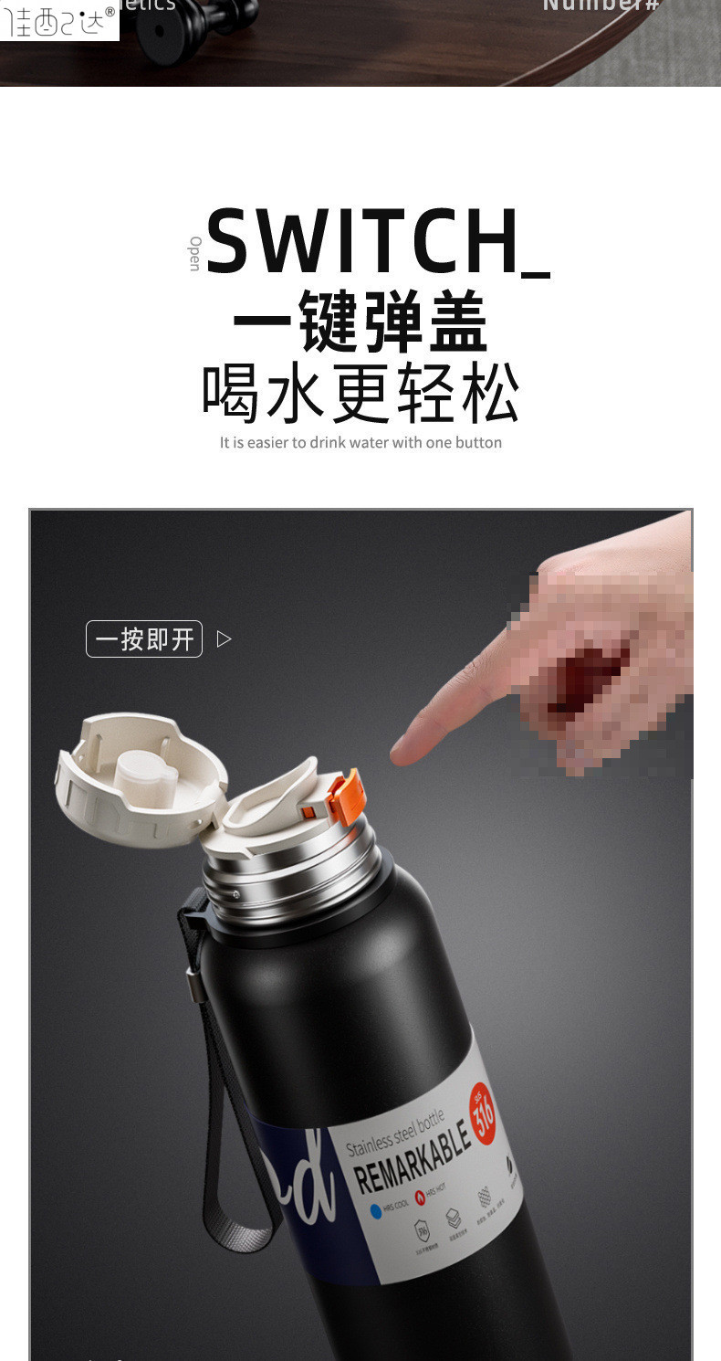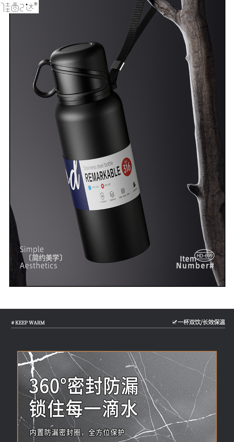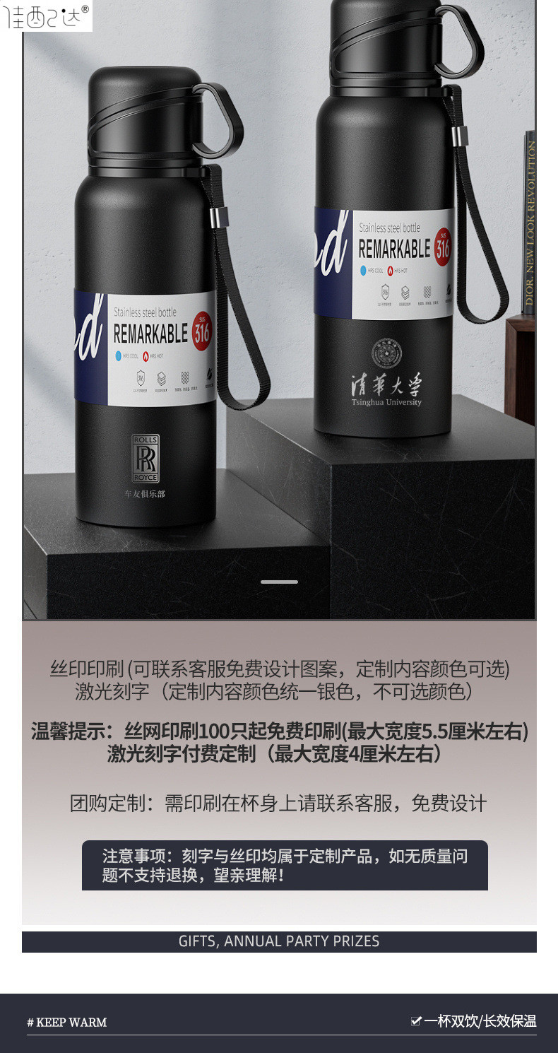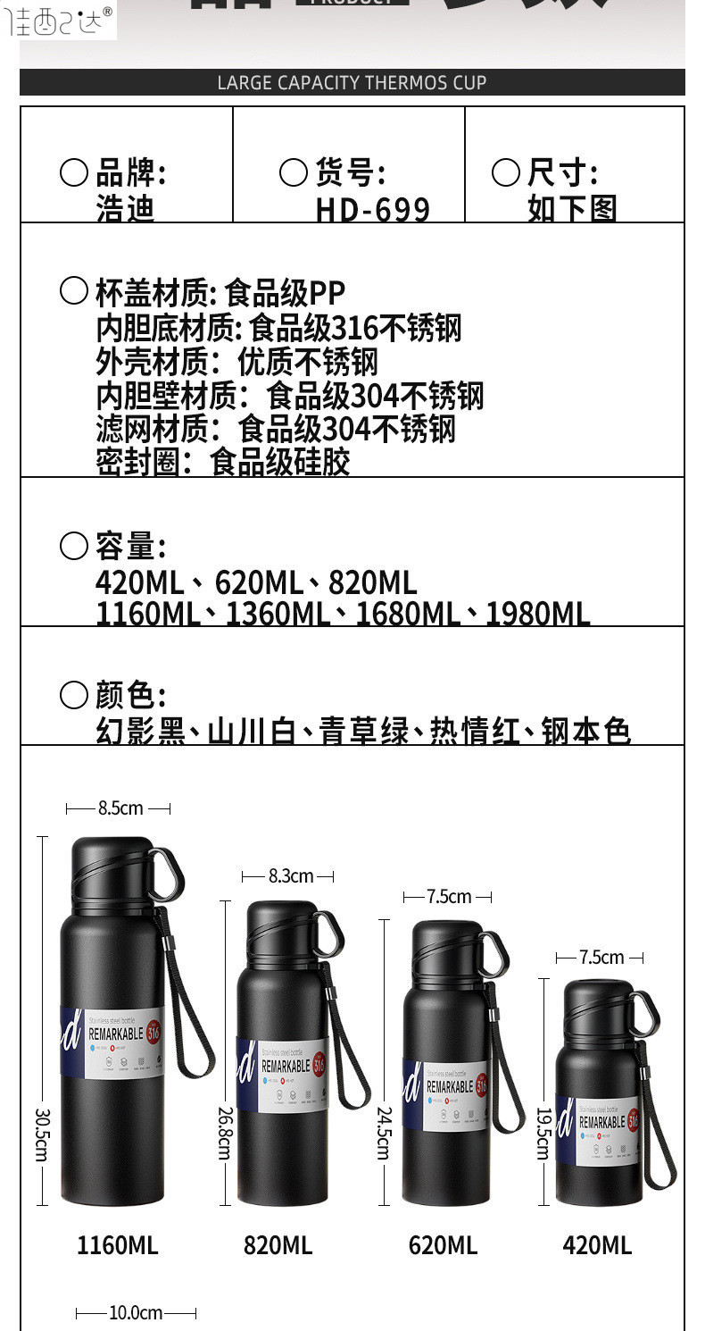 대형 용량 더블 뚜껑 보온병 컵 316 주전자 휴대용 자동차 야외 티 컵을 분리하는 스테인레스 스틸 차