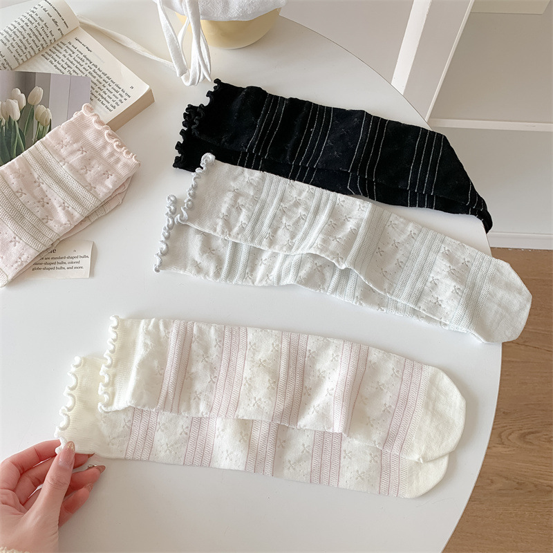 봄과 여름 새로운 스타일 양말 여성 한국 스타일 풀 바디 활 여성 미드 스타일 양말 발레 스타일 미우 스타일 스트레이트 플레이트 스택 양말스토어 가기