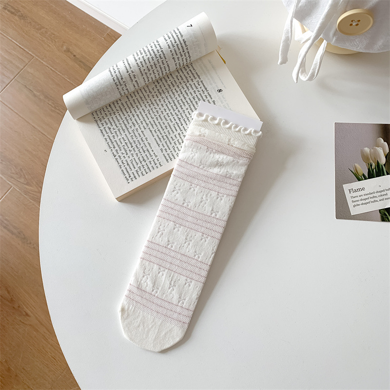 봄과 여름 새로운 스타일 양말 여성 한국 스타일 풀 바디 활 여성 미드 스타일 양말 발레 스타일 미우 스타일 스트레이트 플레이트 스택 양말
