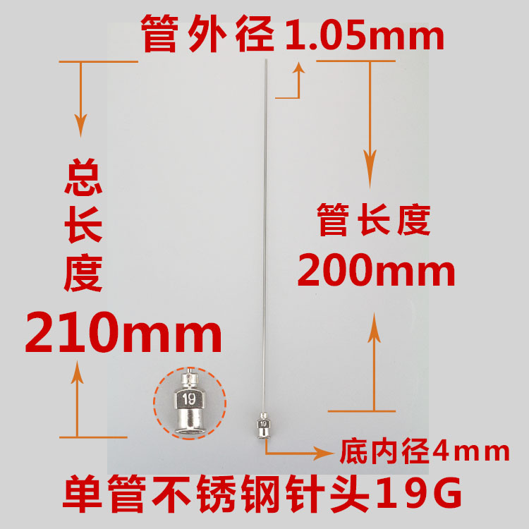 총 길이 210mm 스테인레스 스틸 분배 바늘 접착제 바늘 분배 기계 접착제 금속 바늘 튜브 길이 200mm