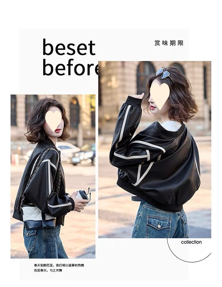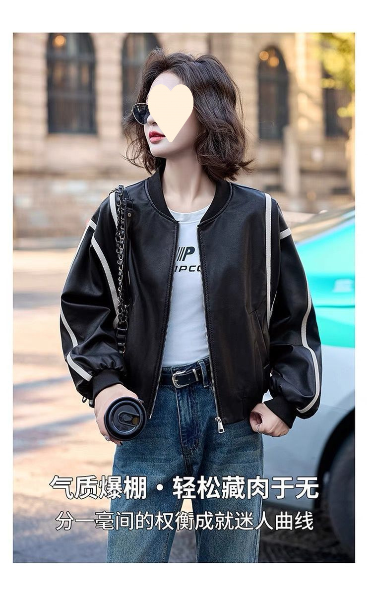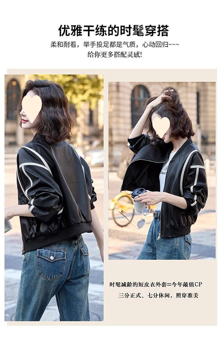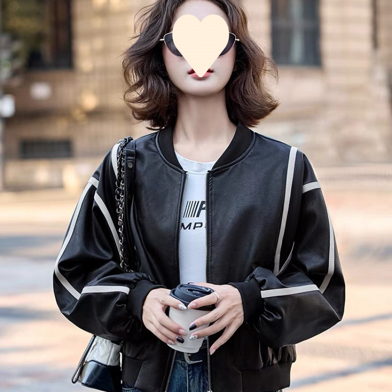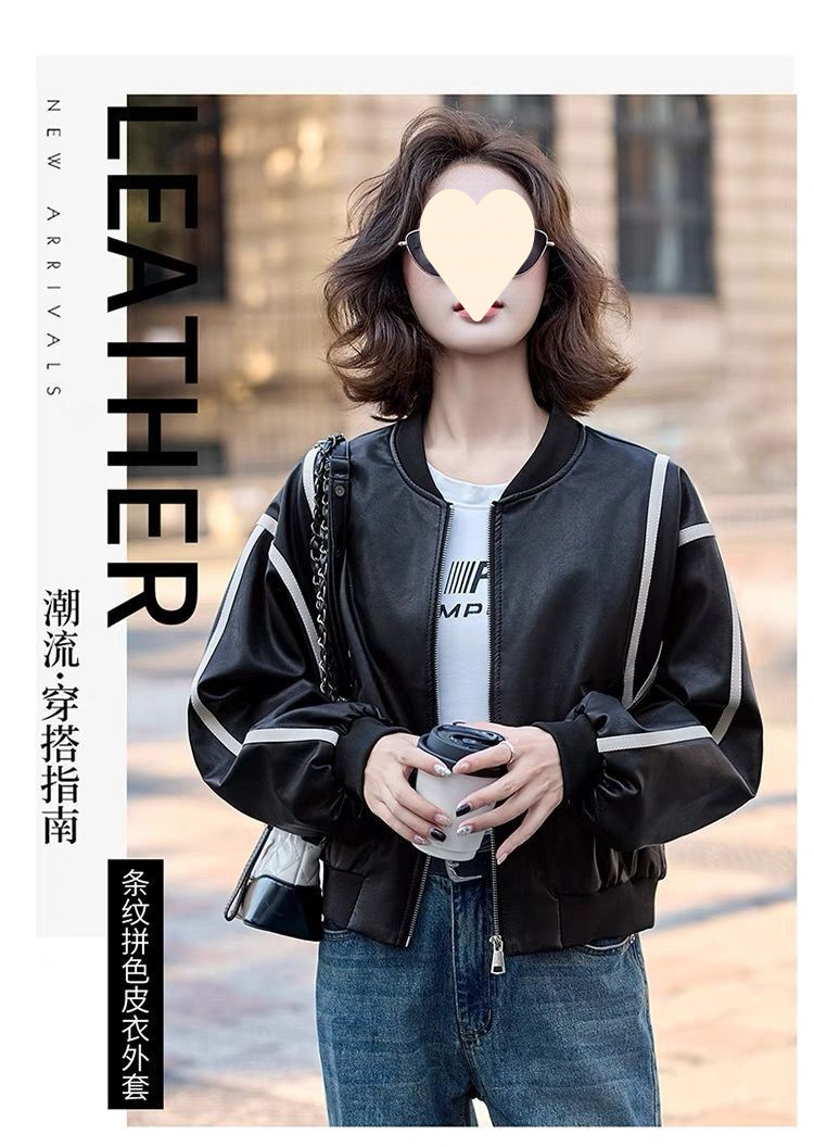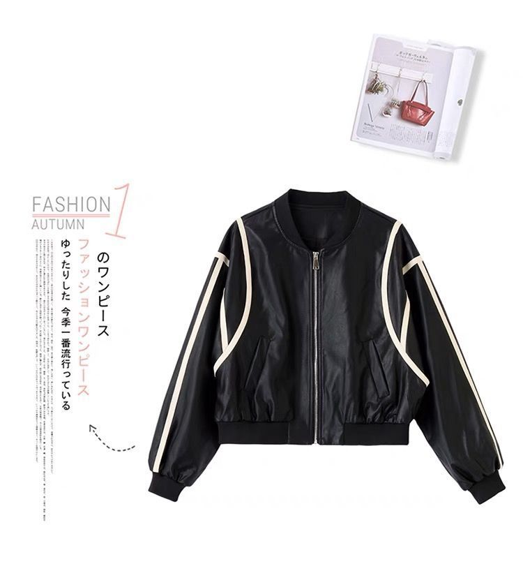 콘트라스트 컬러 가죽 코트 야구 세트 여자 2024 봄과 가을 새로운 느슨한 캐주얼 패션 나이 감소 가죽 자켓 탑