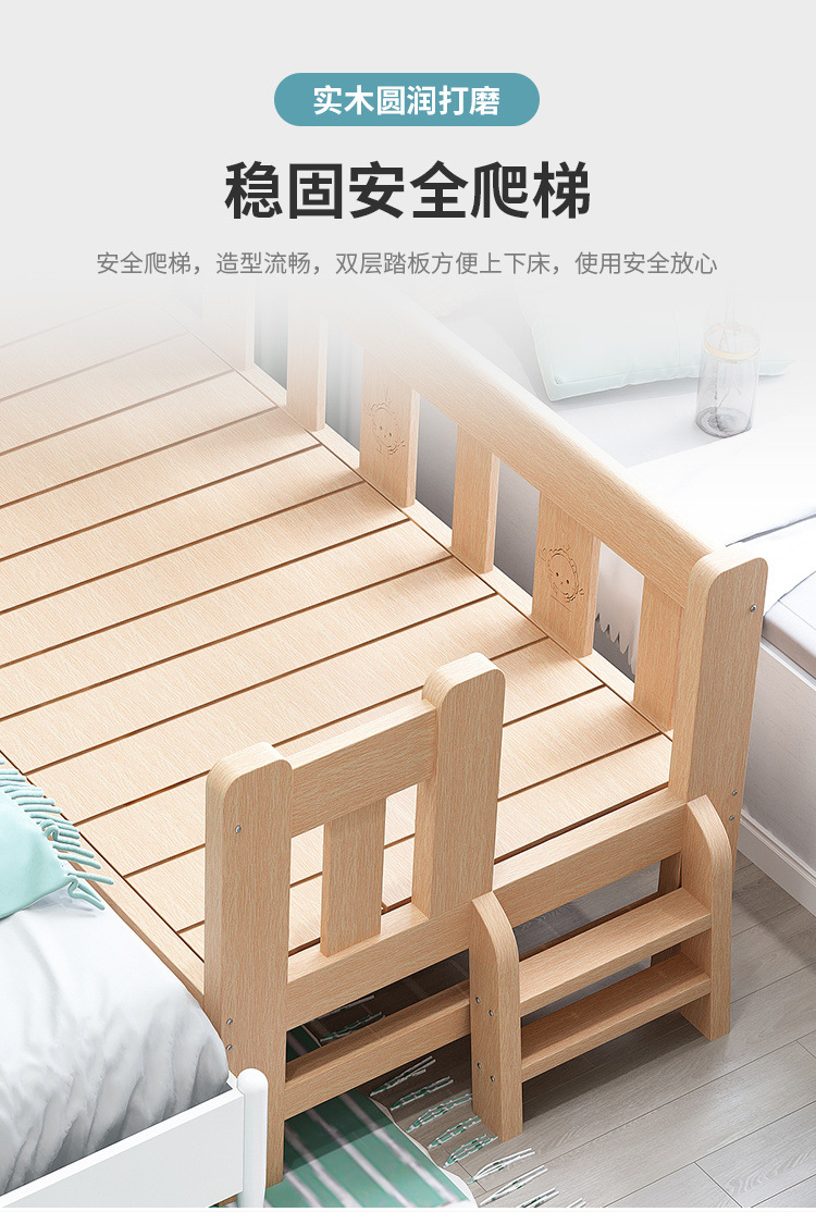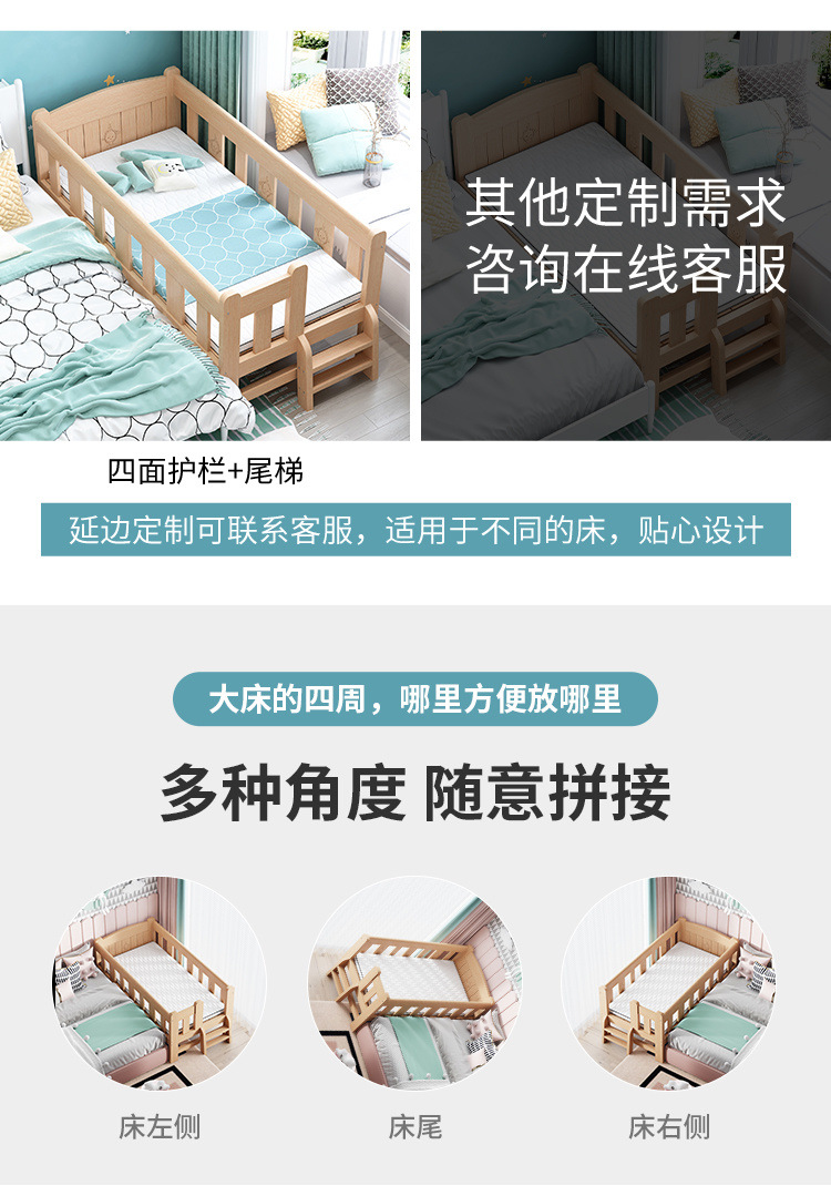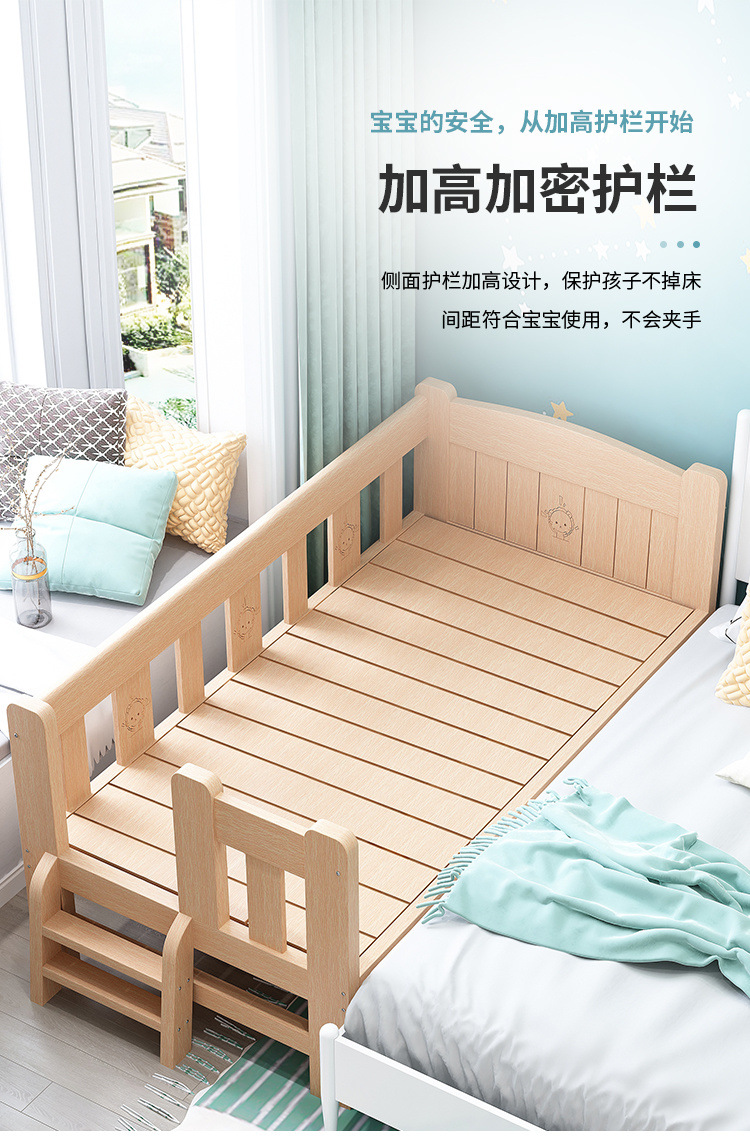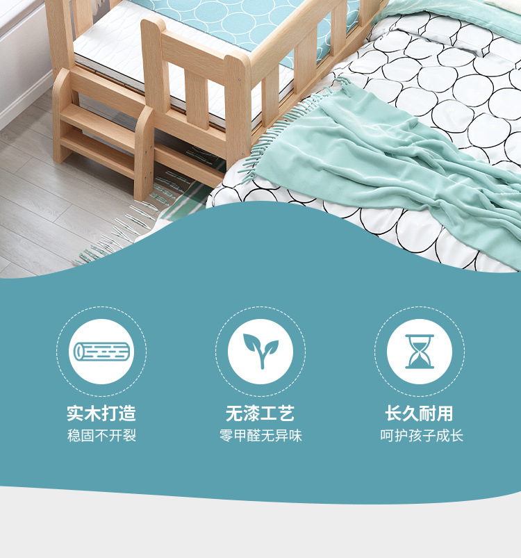 단단한 나무 침대 드롭 저항하는 아기의 작은 침대가 결합 된 큰 침대 폭 넓은 침대 가드 레일이 달린 침대 옆 어린이 침대