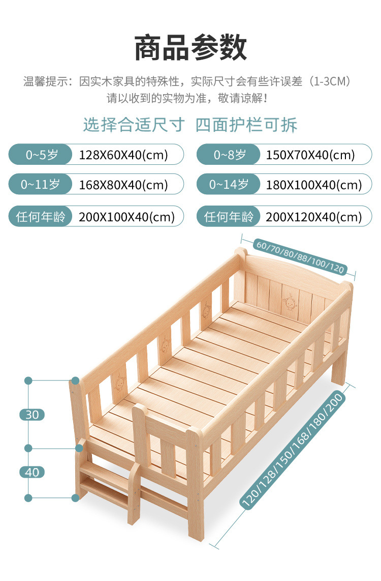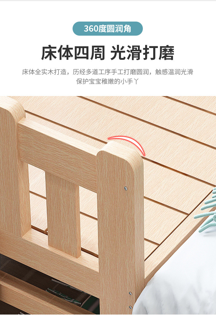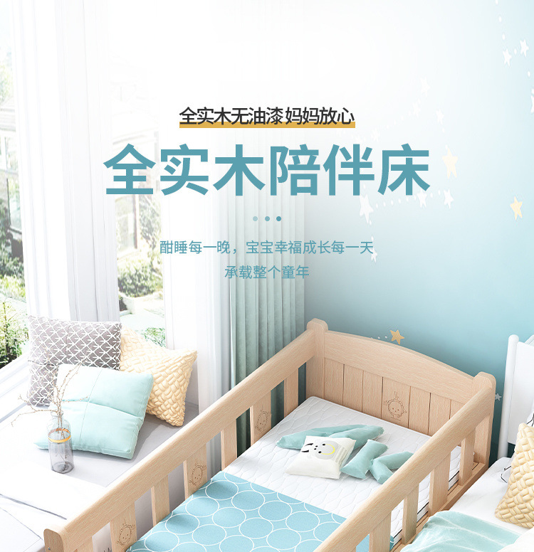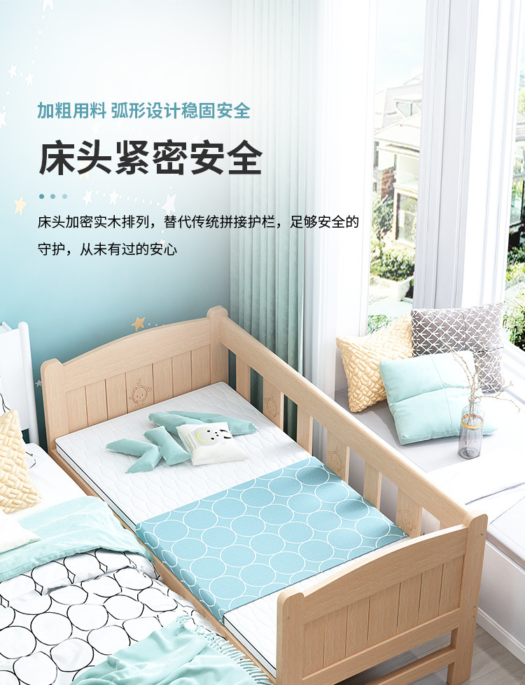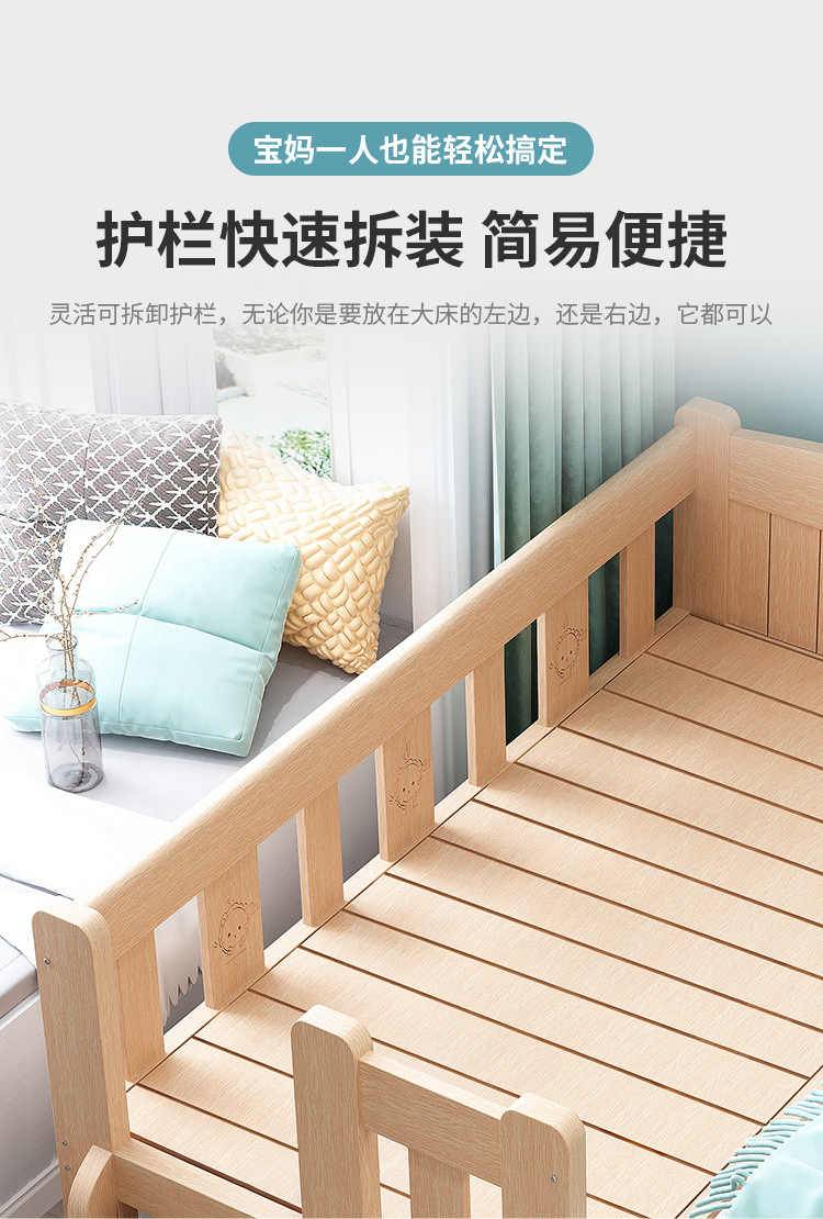 단단한 나무 침대 드롭 저항하는 아기의 작은 침대가 결합 된 큰 침대 폭 넓은 침대 가드 레일이 달린 침대 옆 어린이 침대