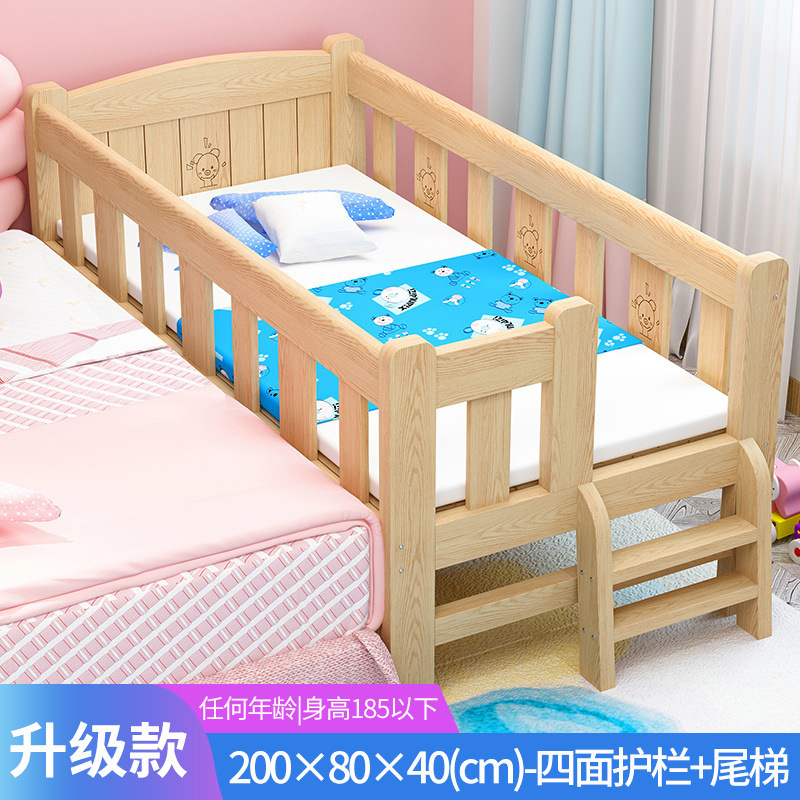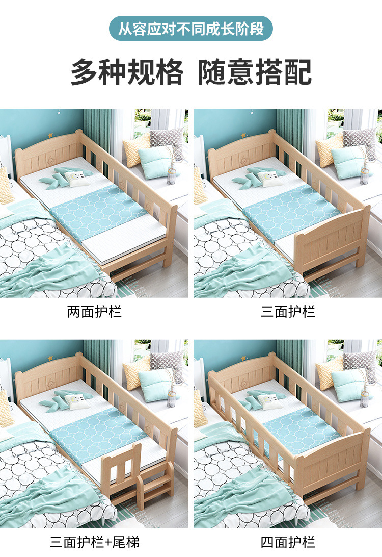 단단한 나무 침대 드롭 저항하는 아기의 작은 침대가 결합 된 큰 침대 폭 넓은 침대 가드 레일이 달린 침대 옆 어린이 침대스토어 가기