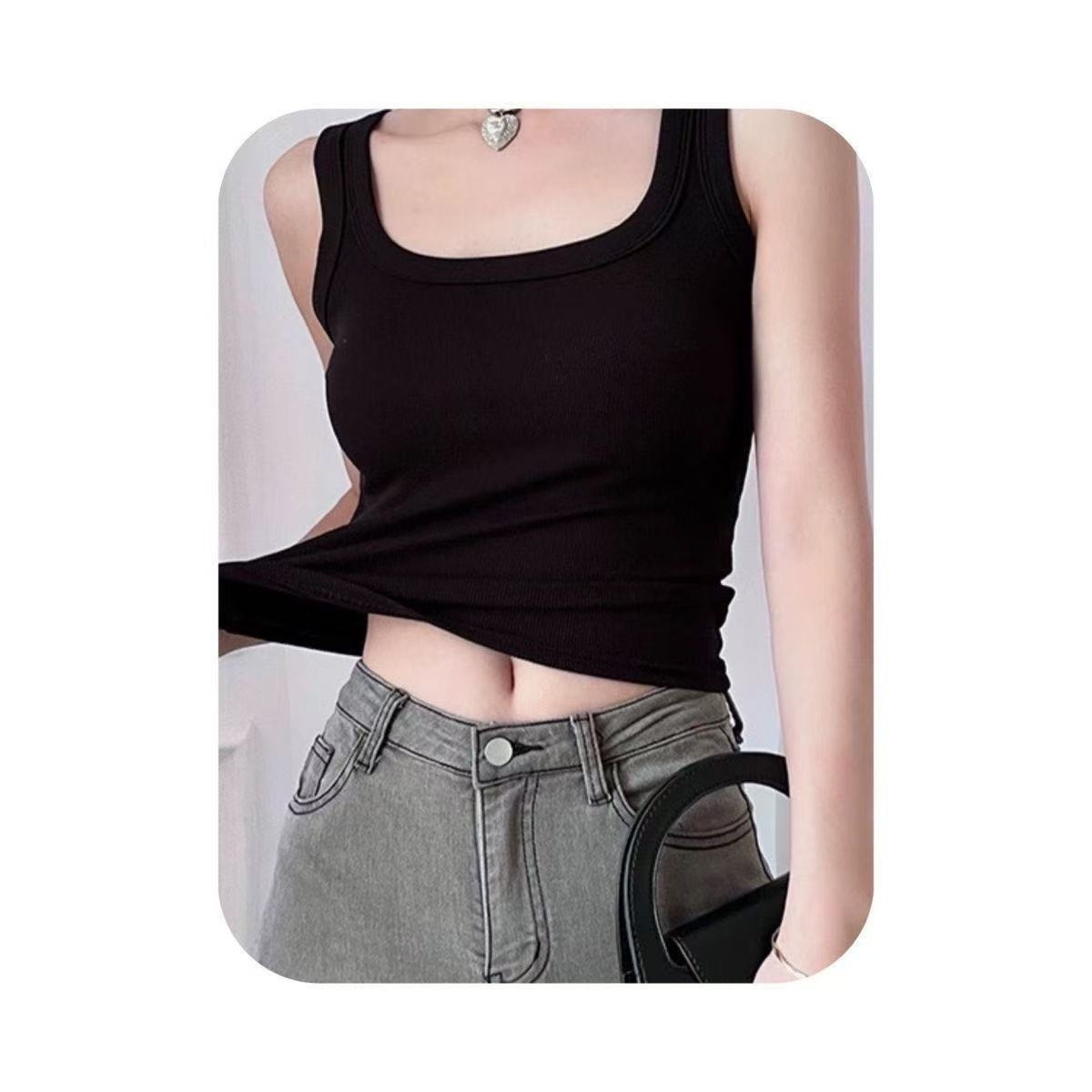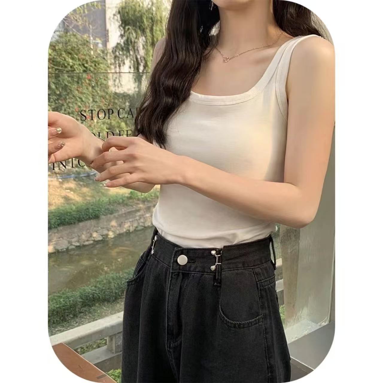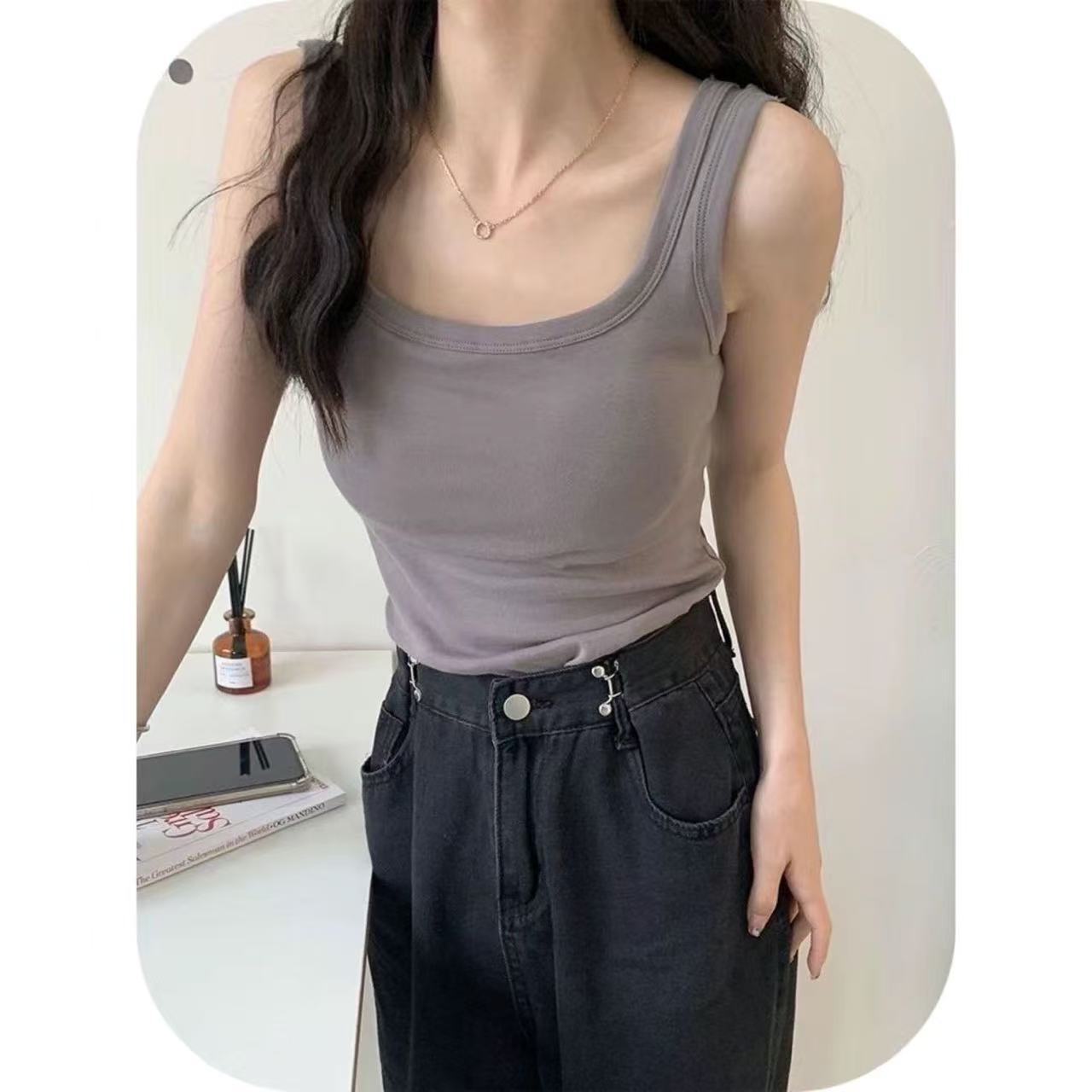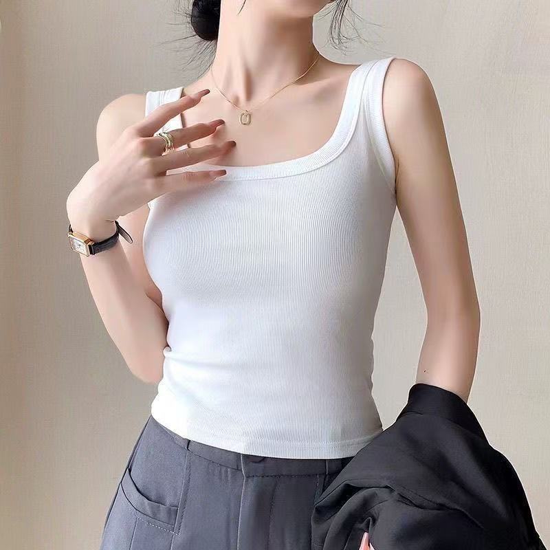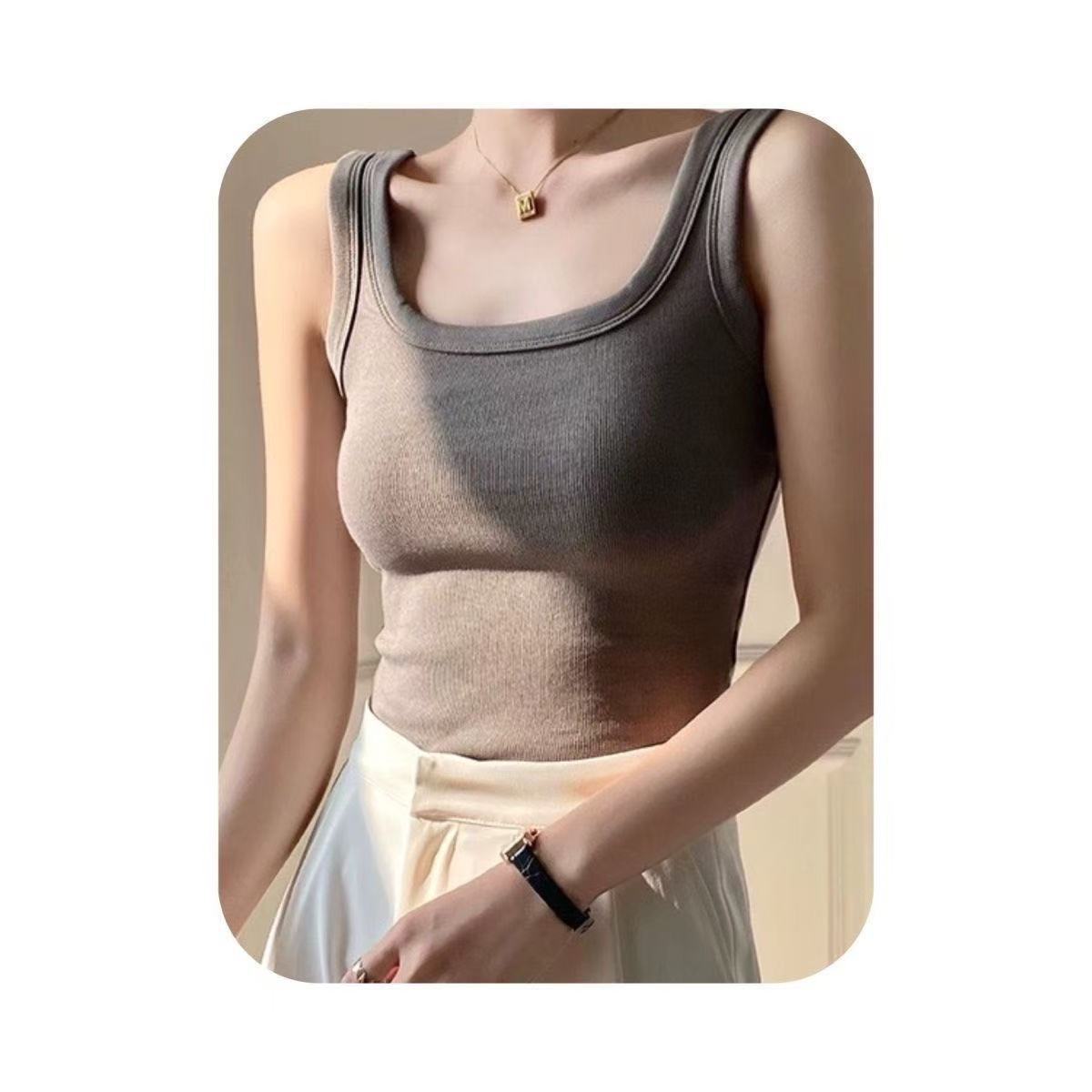 여름용 여성용 솔리드 컬러 불투명 끈나시, 가슴 패드 내장, 화이트 이너웨어, 순수하고 섹시한 백리스 탑, 달콤한 스타일스토어 가기