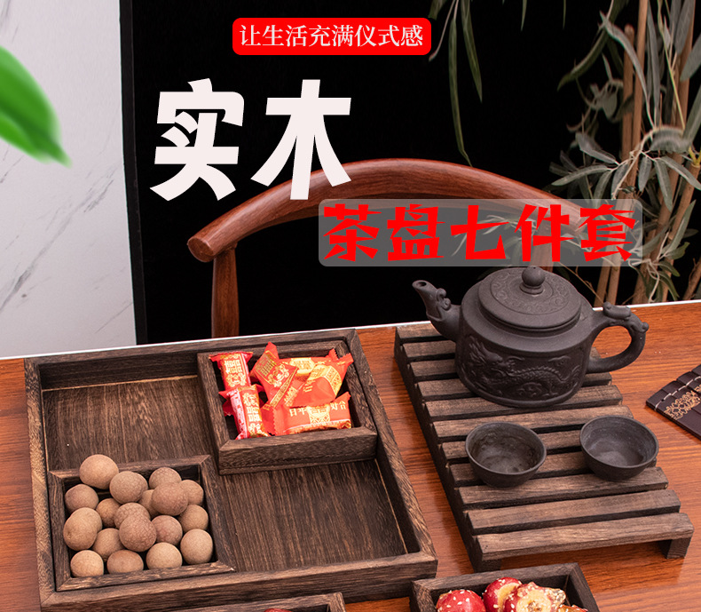 차 트레이 7종 세트, 화로 주변 차 끓이기용 간식 트레이, 차 트레이, 디저트 디스플레이 트레이, 원목 건과일 트레이, 차 거름망 트레이, 차 도구