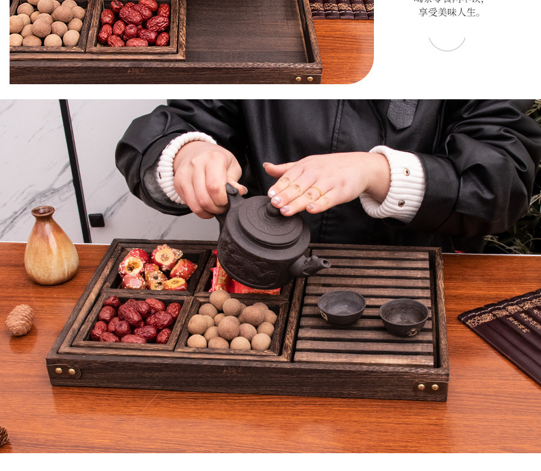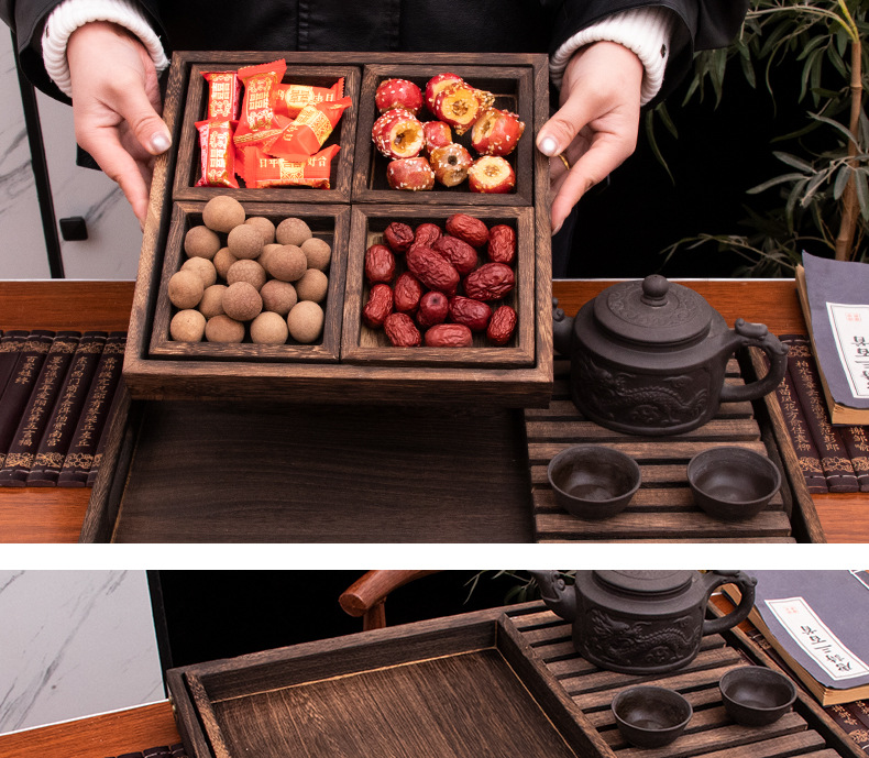 차 트레이 7종 세트, 화로 주변 차 끓이기용 간식 트레이, 차 트레이, 디저트 디스플레이 트레이, 원목 건과일 트레이, 차 거름망 트레이, 차 도구스토어 가기
