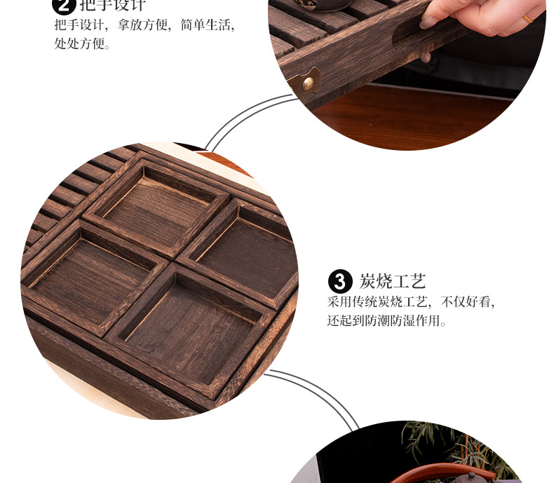 • 번트 오동나무 티 트레이 7종 세트(티 누수 버전)