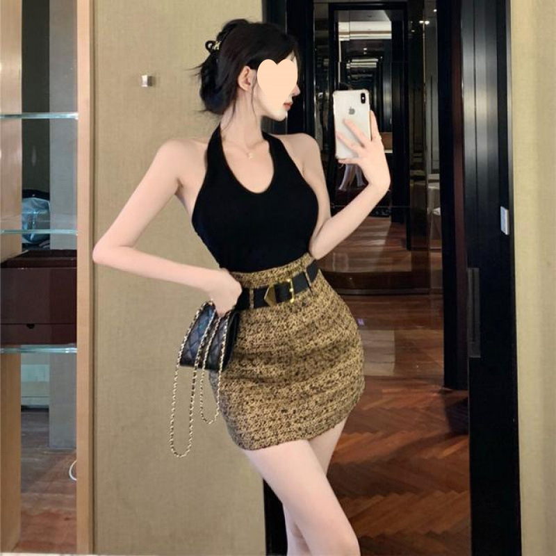 여름 패션 섹시 홀터 탑 여성의 짧은 디자인 센스 아우터웨어 아름다운 백 조끼 하프 길이 스커트 매칭스토어 가기