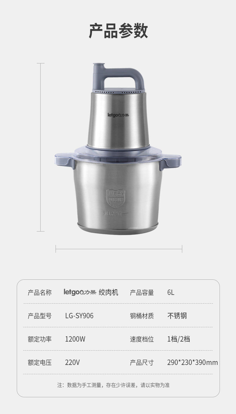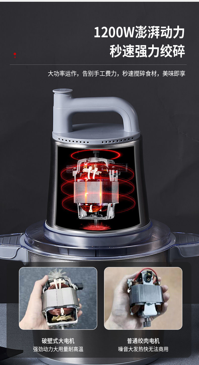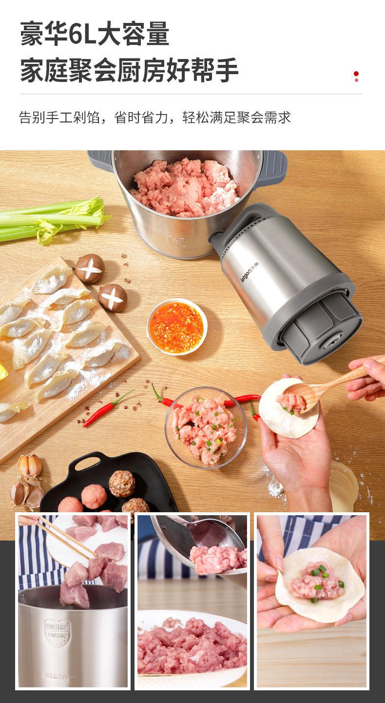 Liguo 고기 분쇄기 2023 새로운 6L 대용량 고성능 상업용 칠리 마늘 가정용 고기 공 비터