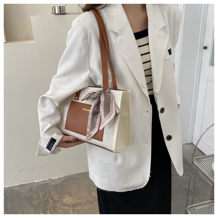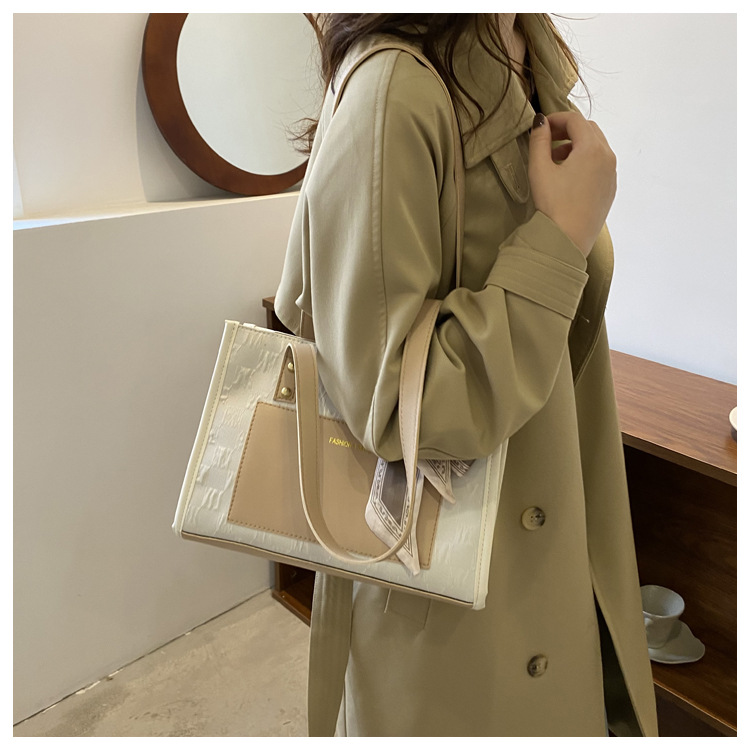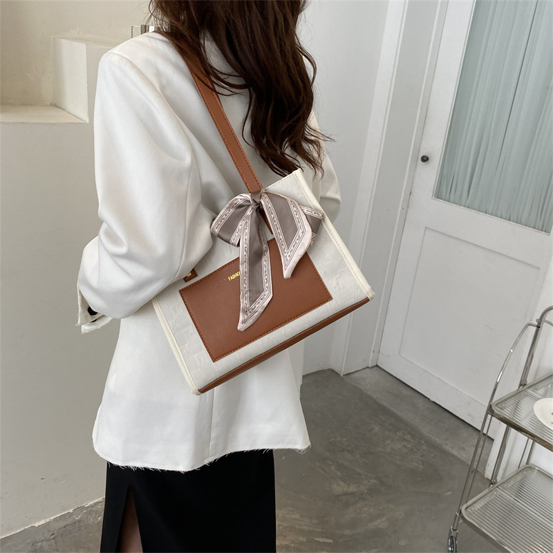 가방 여자의 2024 새로운 올 매치 통근 대용량 어깨 가방 대비 컬러 토트 백 어깨 활 핸드 백