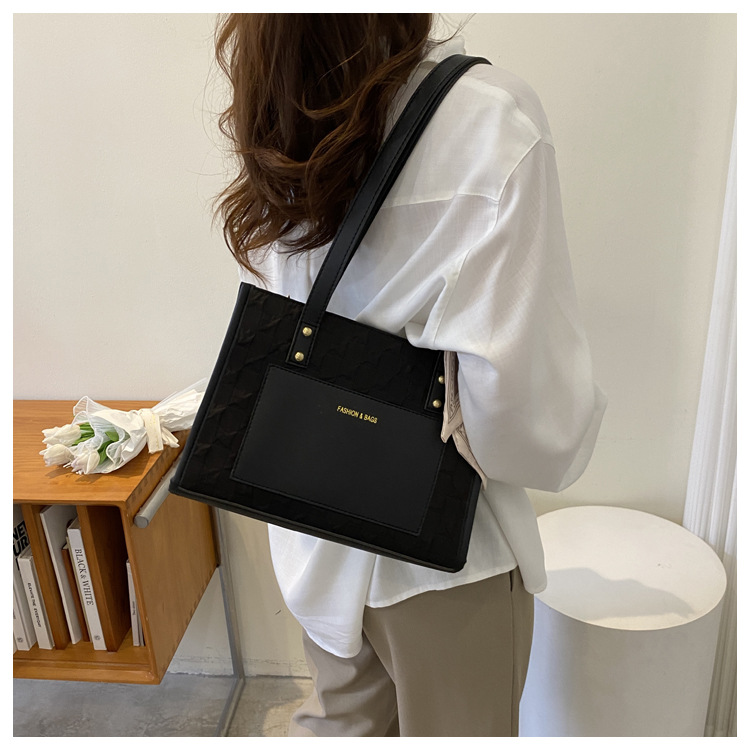 가방 여자의 2024 새로운 올 매치 통근 대용량 어깨 가방 대비 컬러 토트 백 어깨 활 핸드 백스토어 가기