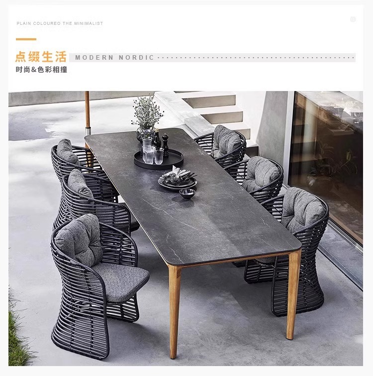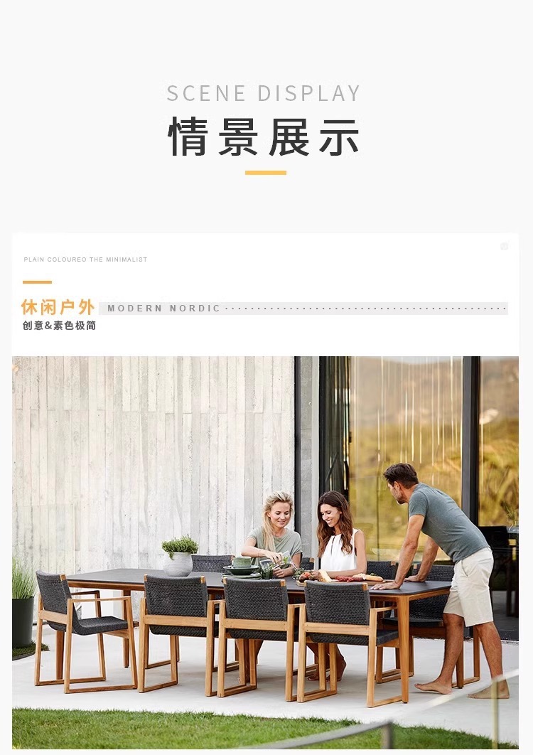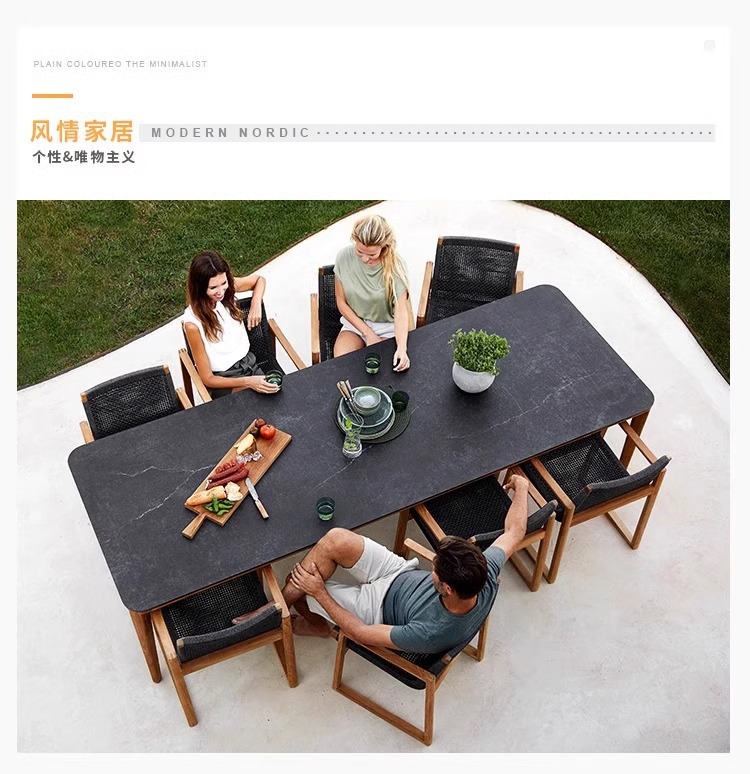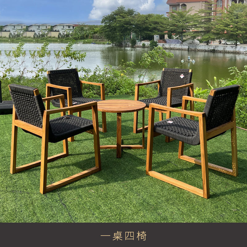 단단한 나무 야외 테이블과 의자 조합 안뜰 방수 및 자외선 차단제 테라스 정원 티크 식탁 레저 싱글 간단한 가구스토어 가기