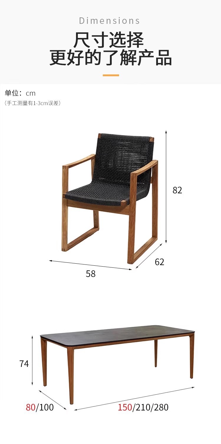 단단한 나무 야외 테이블과 의자 조합 안뜰 방수 및 자외선 차단제 테라스 정원 티크 식탁 레저 싱글 간단한 가구