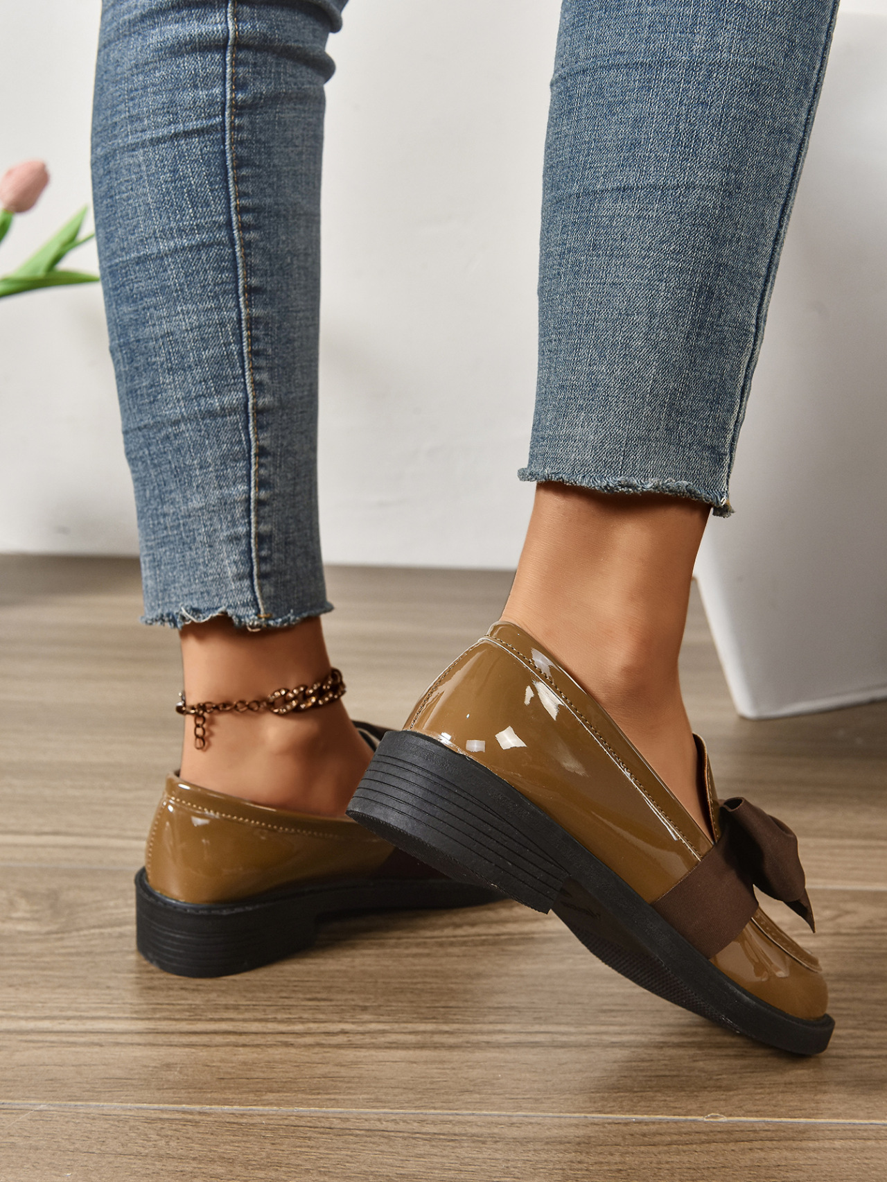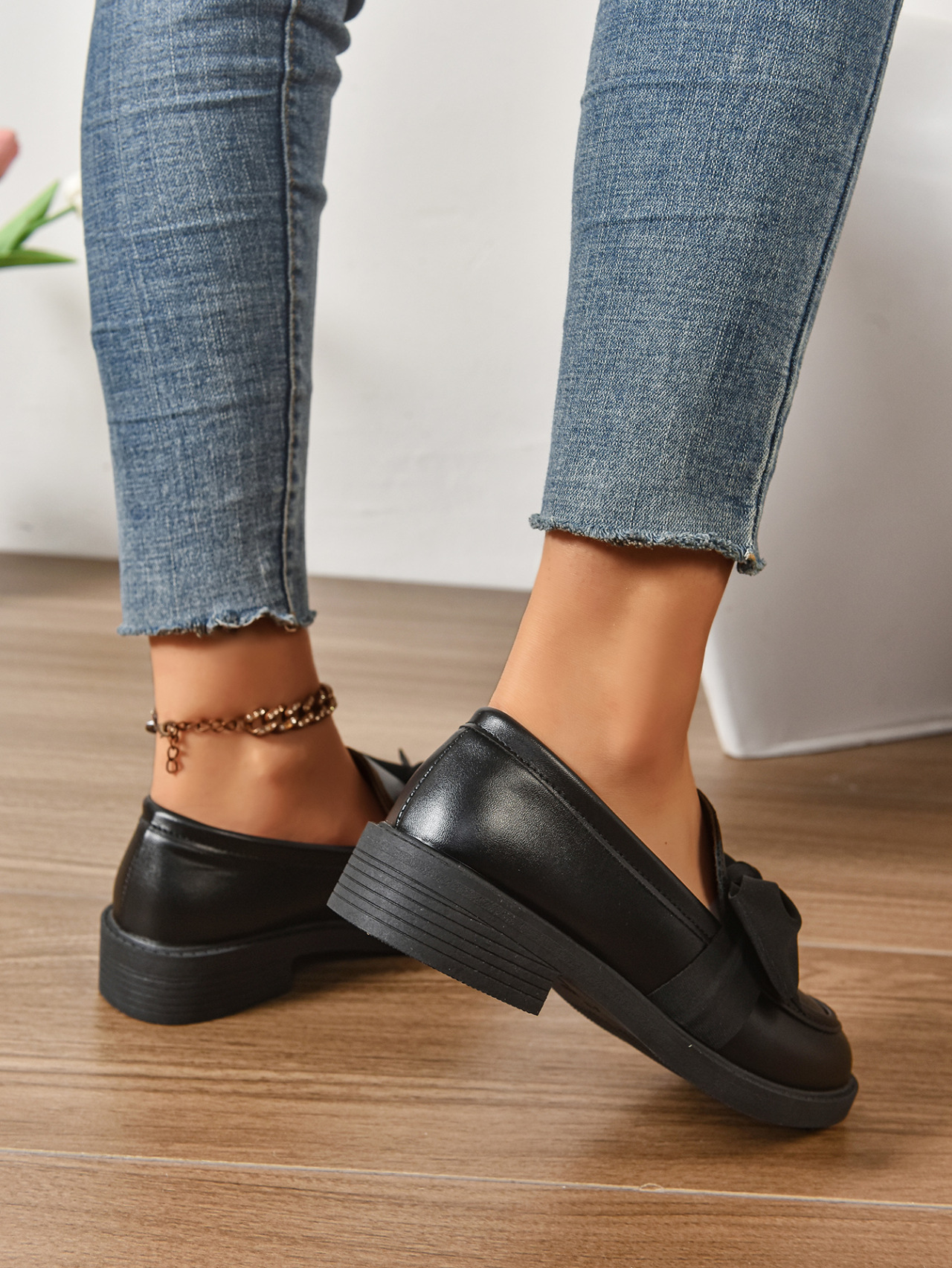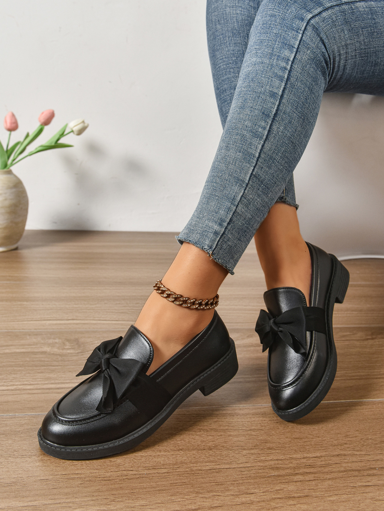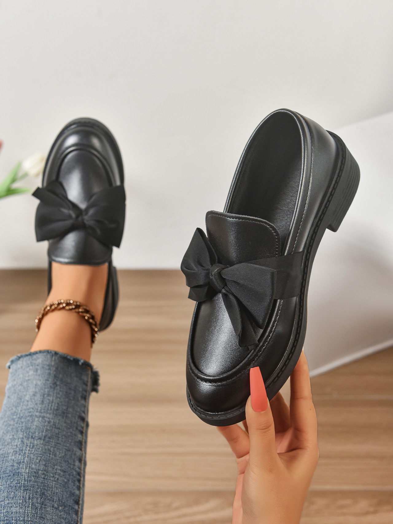 2025 봄 새 활 슬립 온 가죽 신발 여성 국경 플러스 사이즈 영국식 로우 힐 레푸 신발스토어 가기