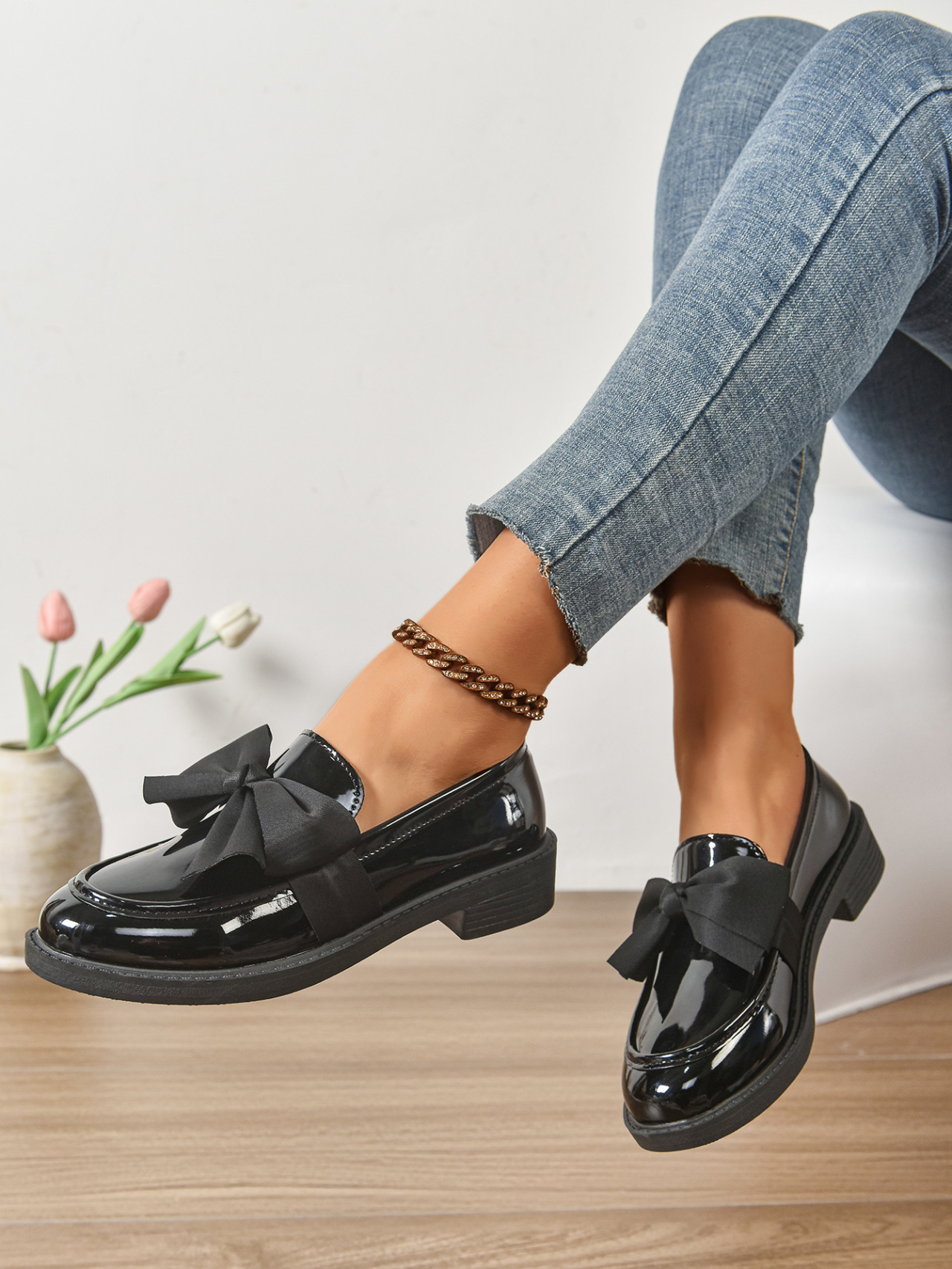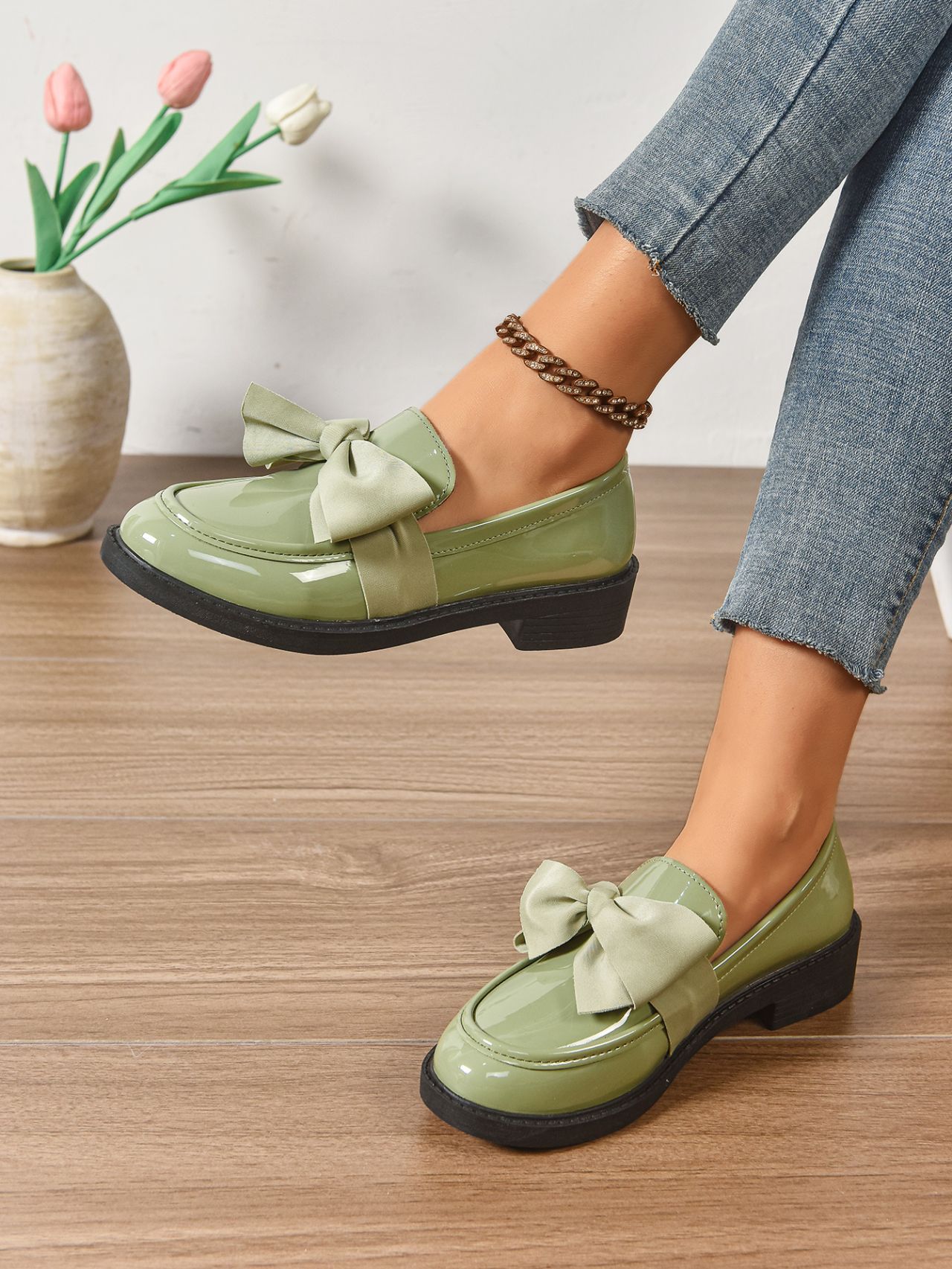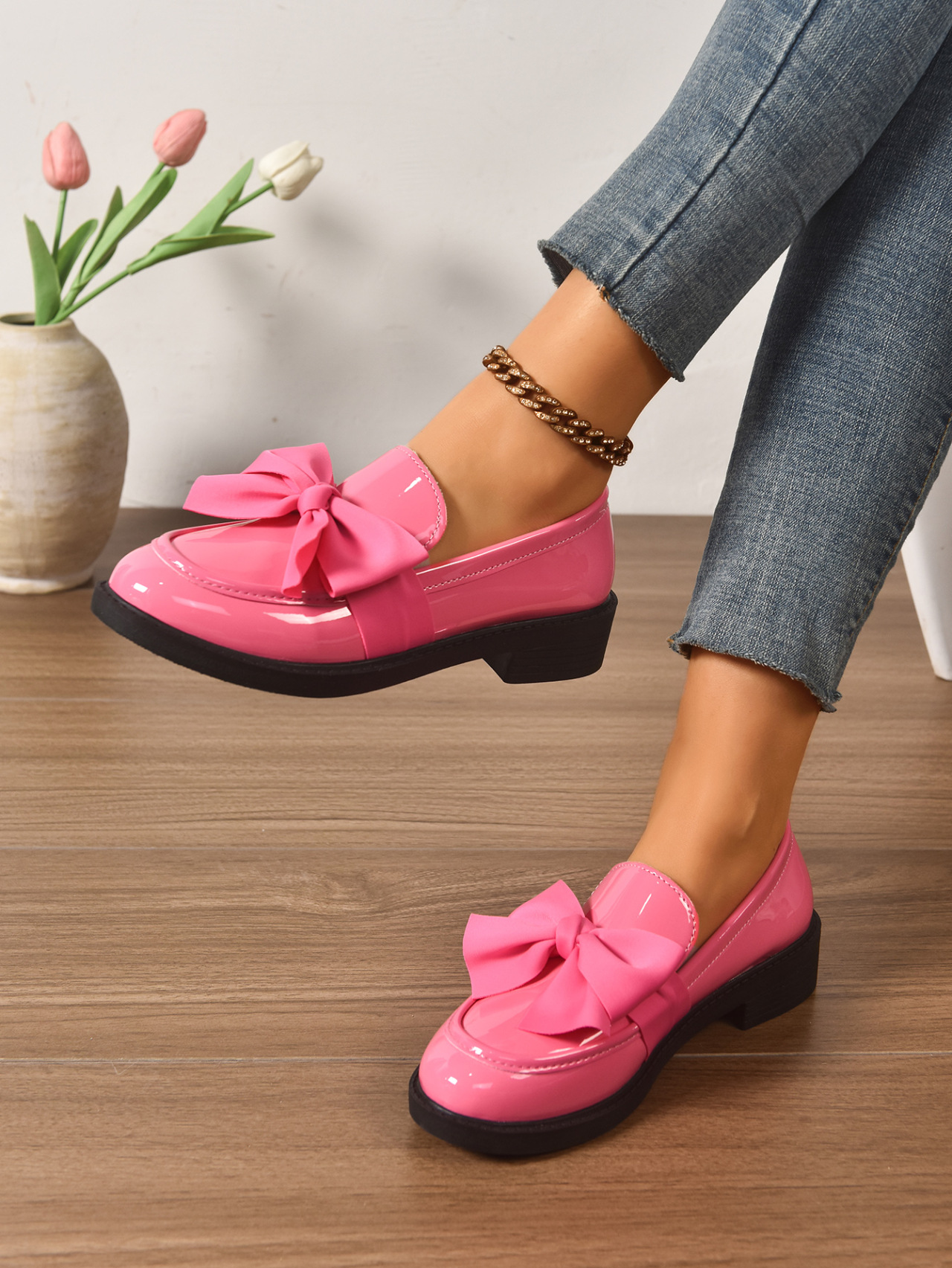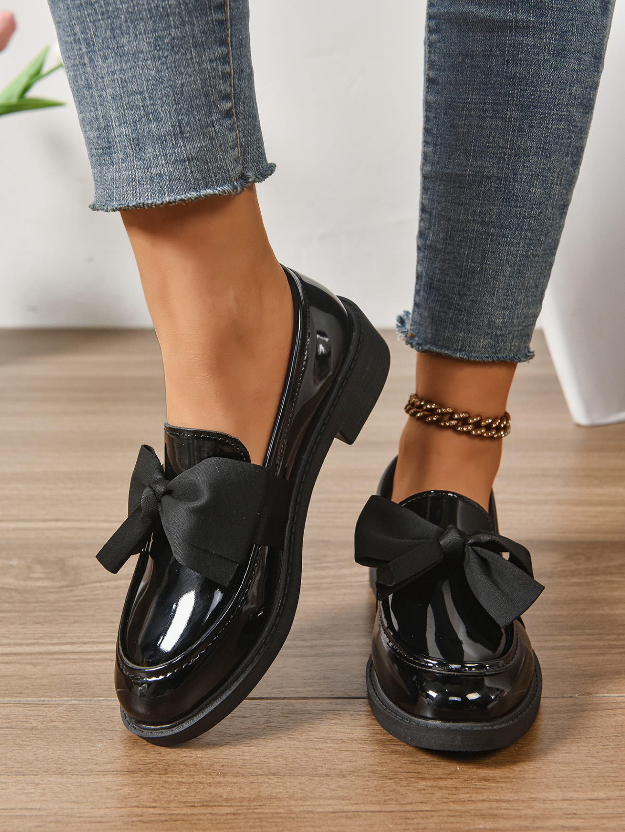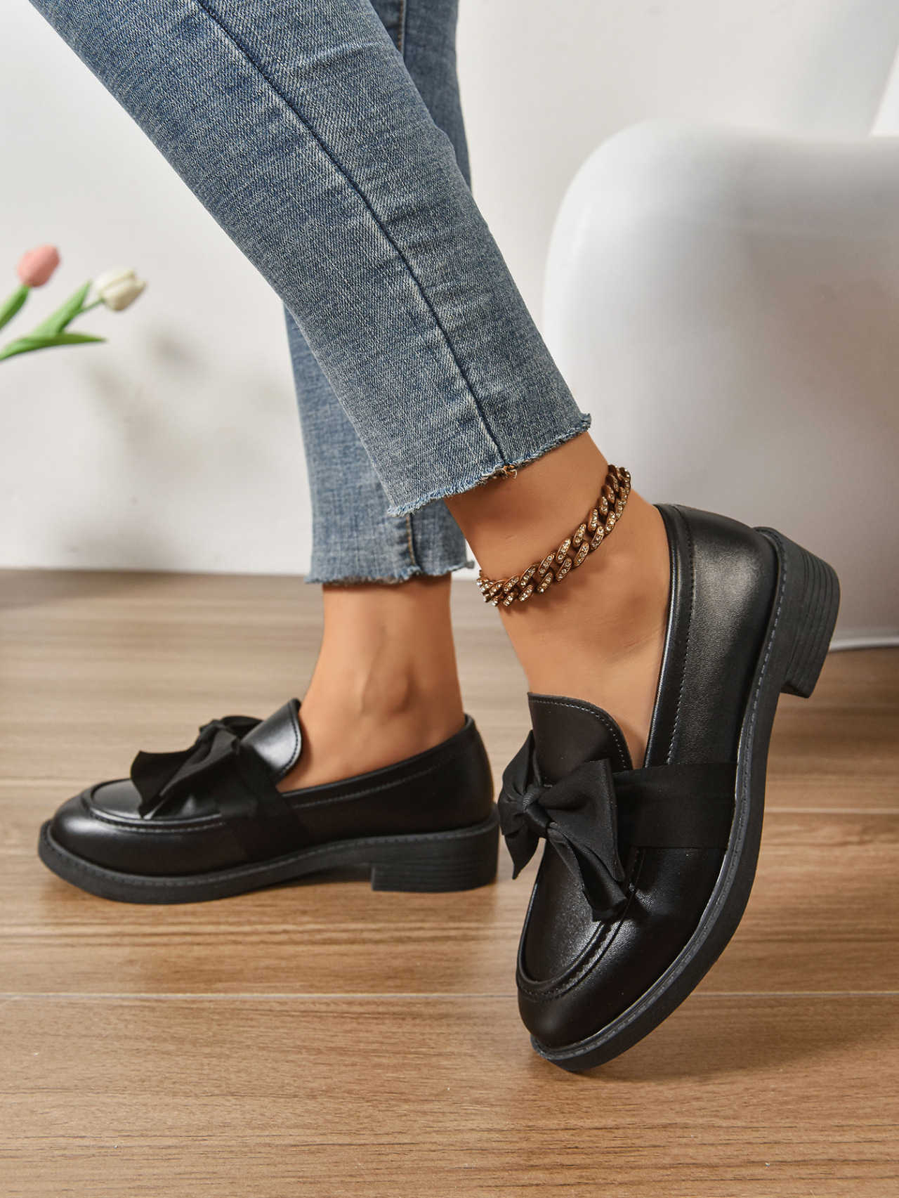 2025 봄 새 활 슬립 온 가죽 신발 여성 국경 플러스 사이즈 영국식 로우 힐 레푸 신발스토어 가기