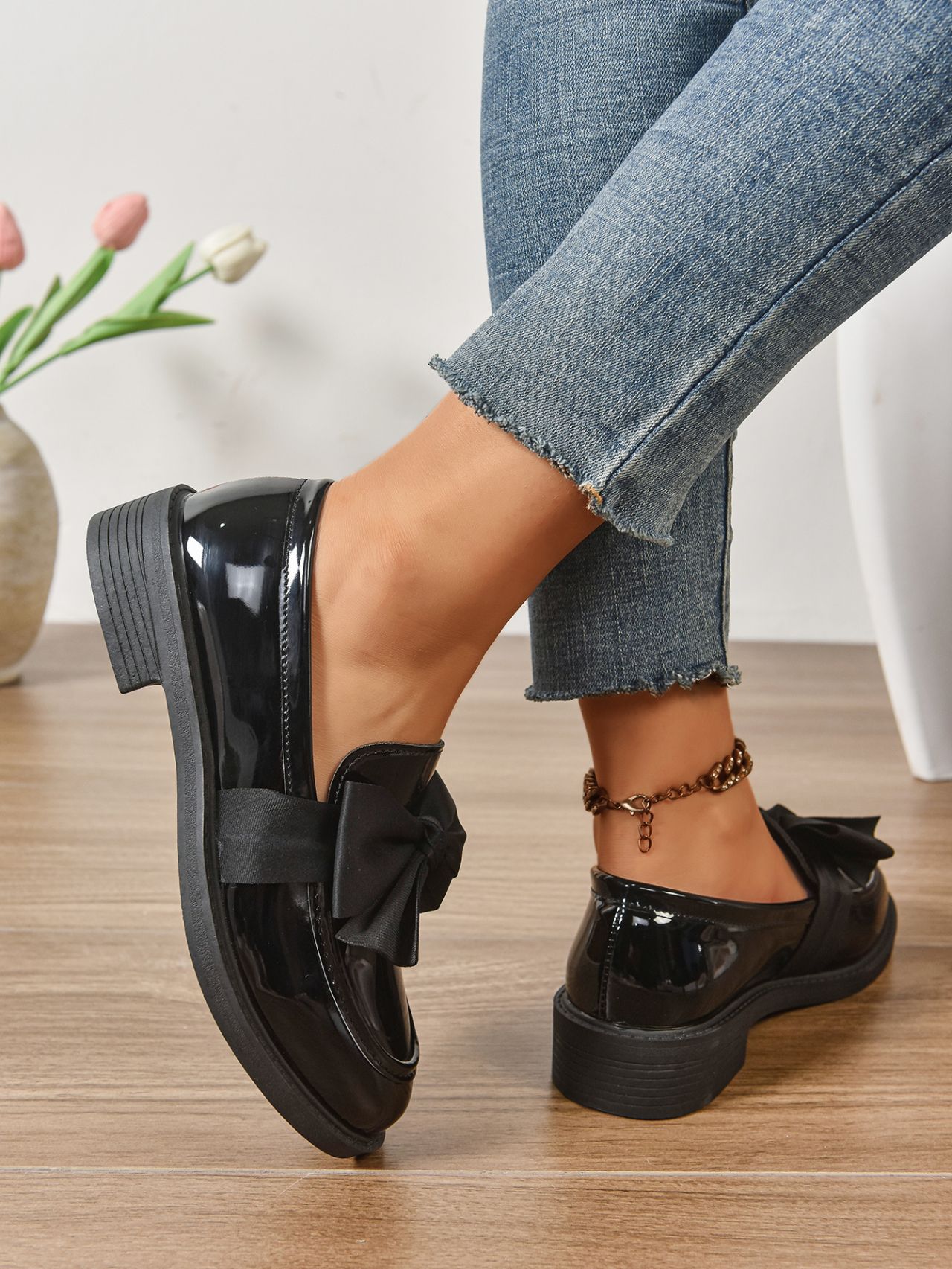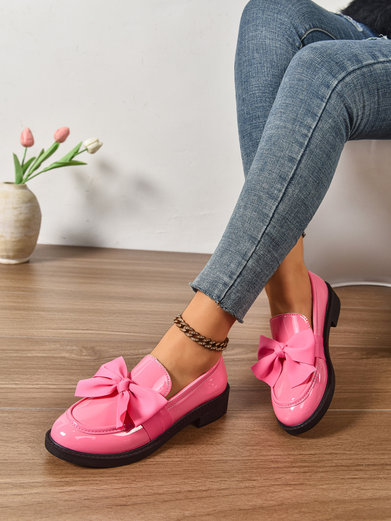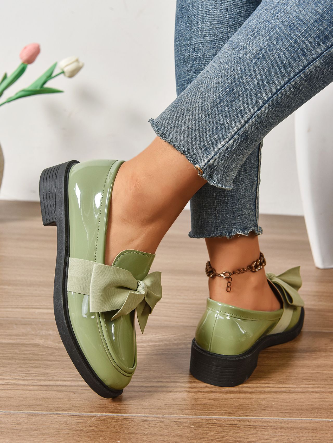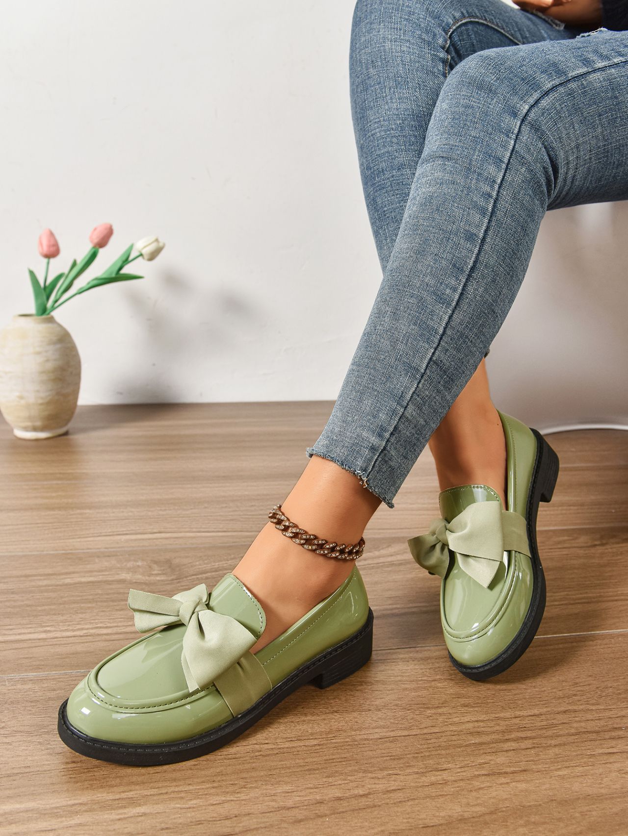 2025 봄 새 활 슬립 온 가죽 신발 여성 국경 플러스 사이즈 영국식 로우 힐 레푸 신발스토어 가기