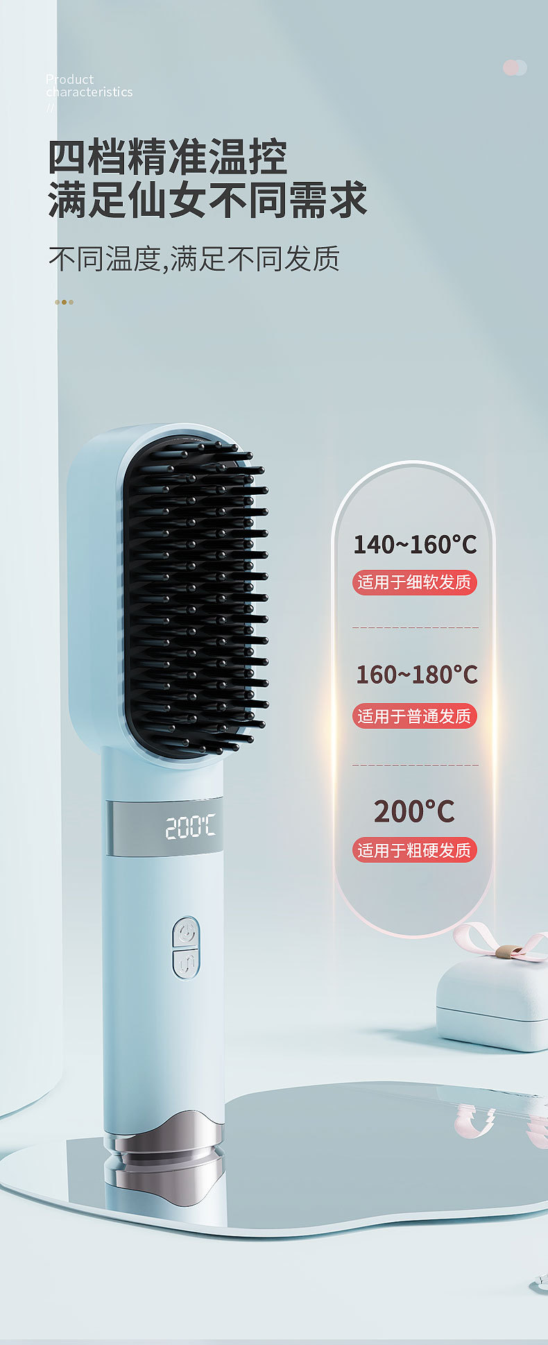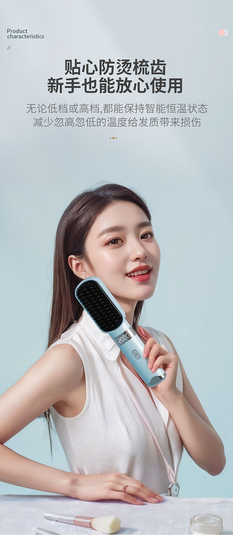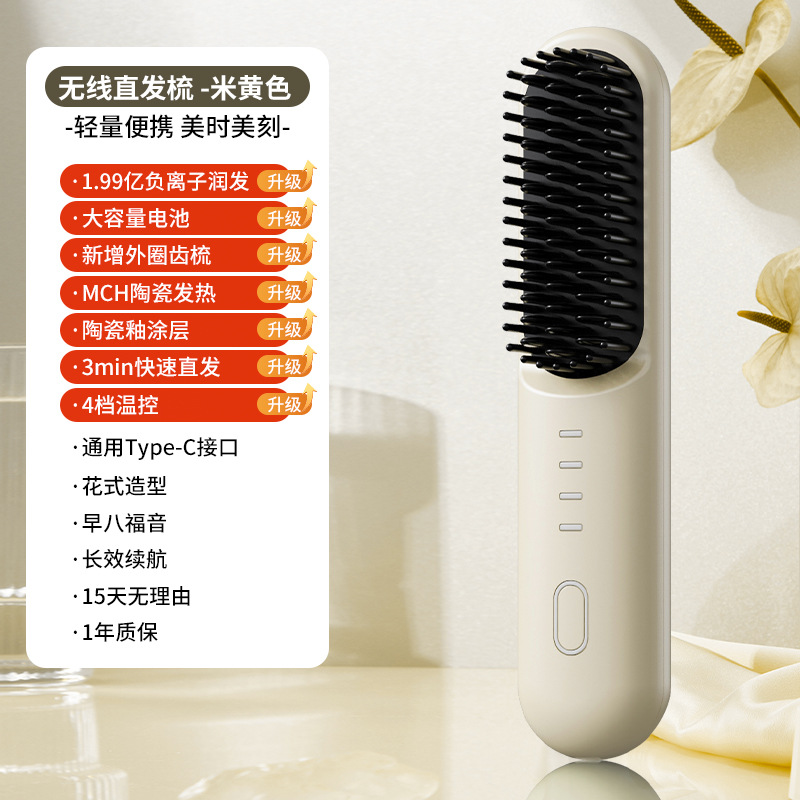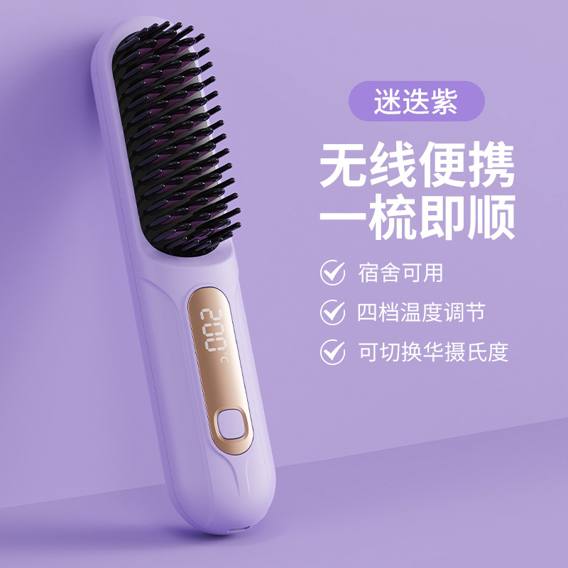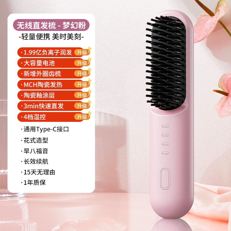 무선 헤어 스트레이트 빗, 음이온 헤어 케어 빗, 충전식, 휴대용, 여행용 기숙사 헤어 빗, 세라믹 가열스토어 가기