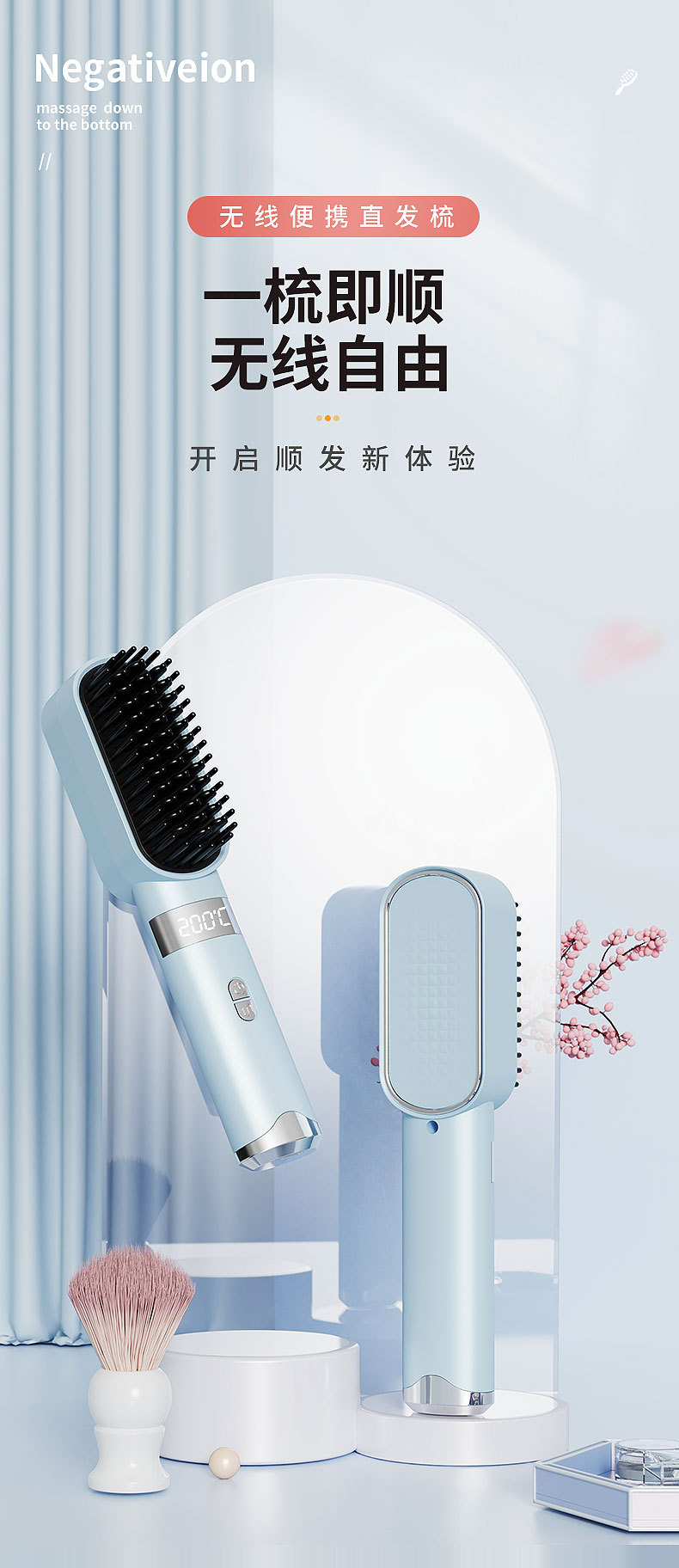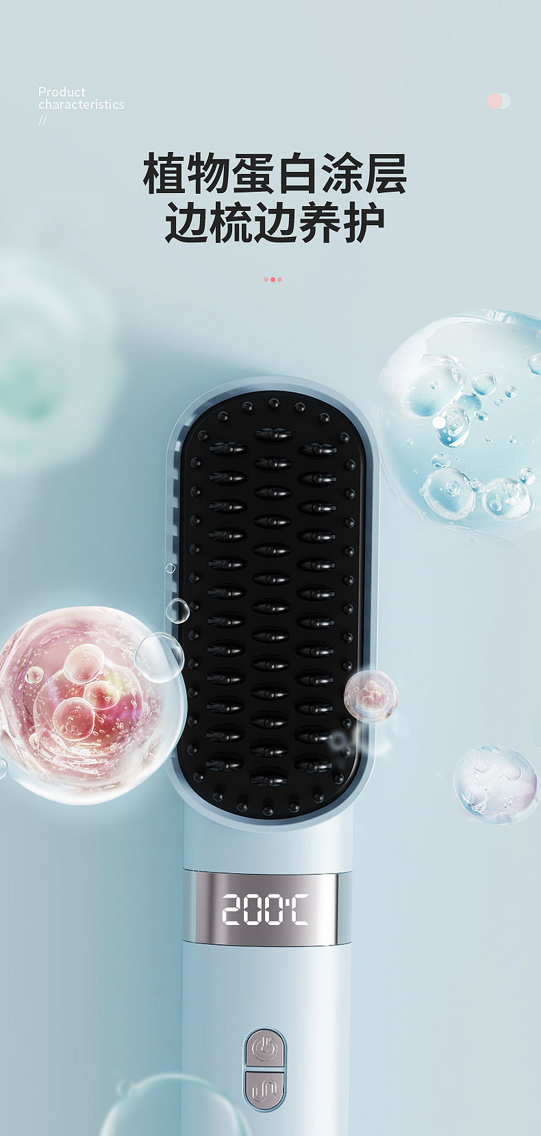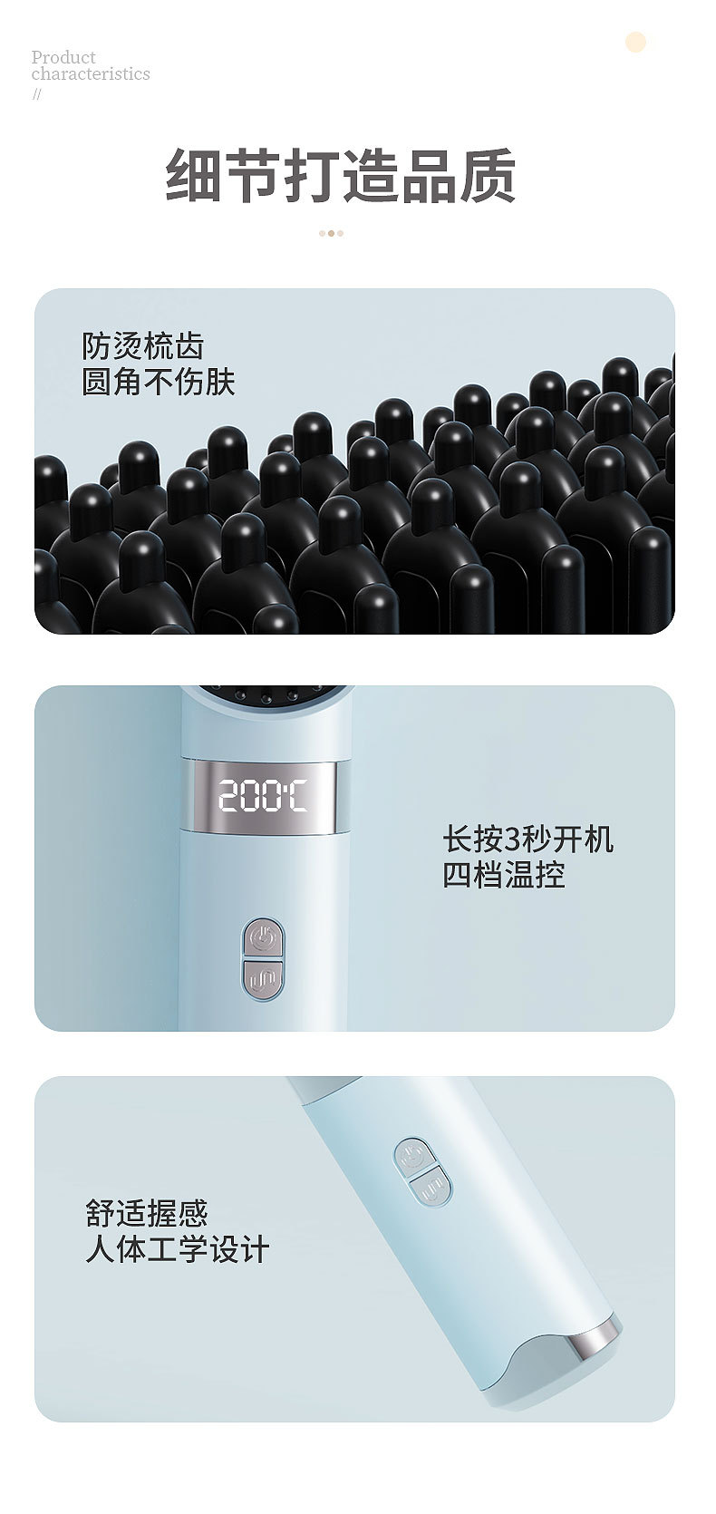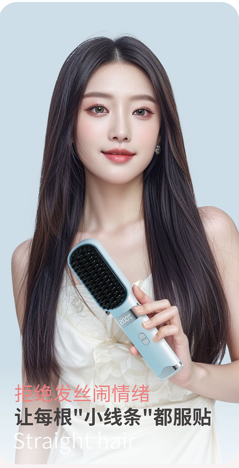 무선 헤어 스트레이트 빗, 음이온 헤어 케어 빗, 충전식, 휴대용, 여행용 기숙사 헤어 빗, 세라믹 가열스토어 가기