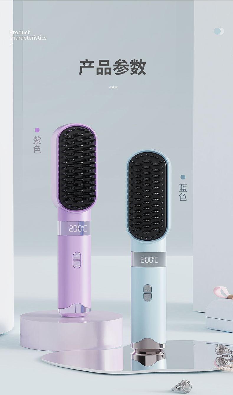 무선 헤어 스트레이트 빗, 음이온 헤어 케어 빗, 충전식, 휴대용, 여행용 기숙사 헤어 빗, 세라믹 가열
