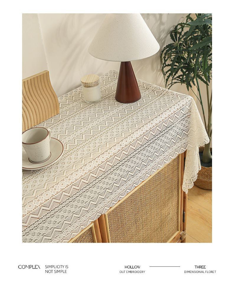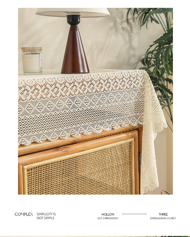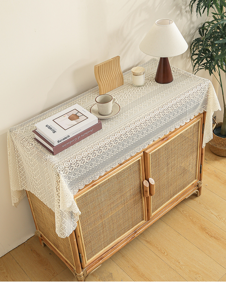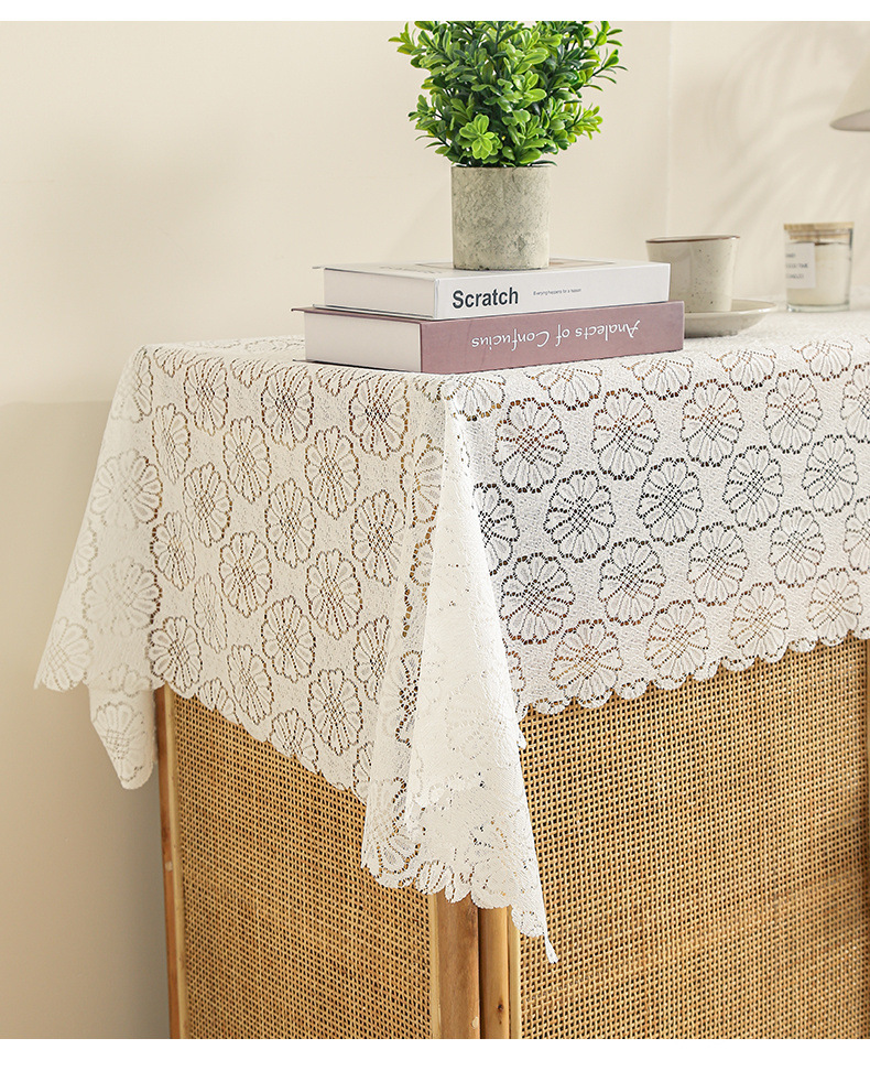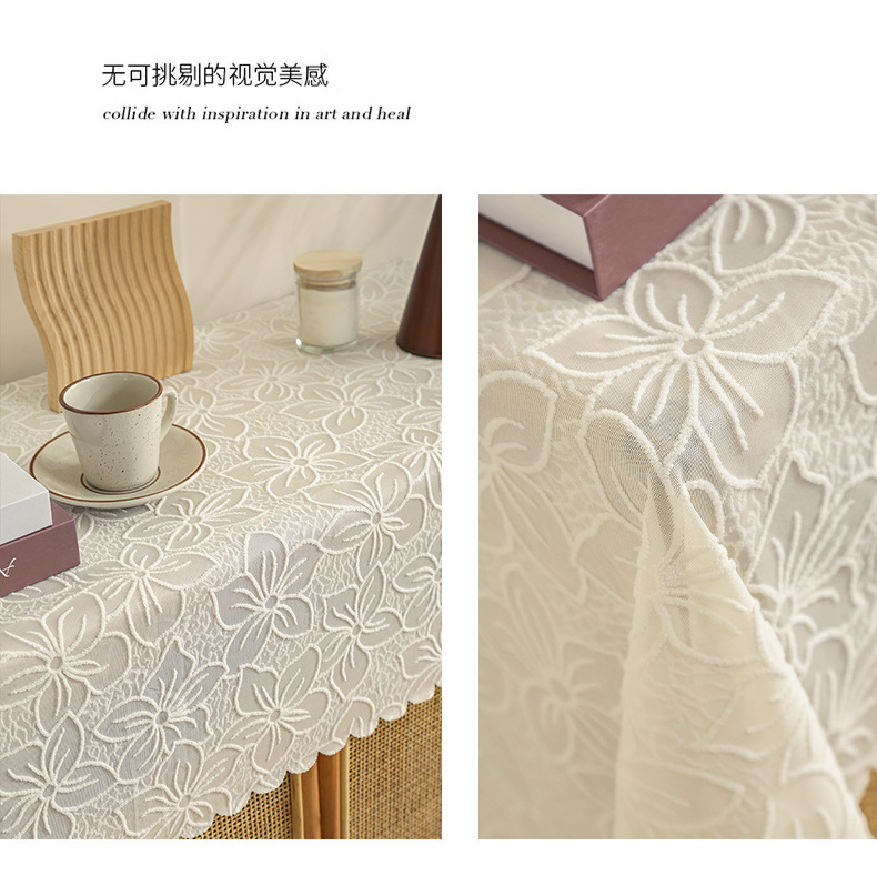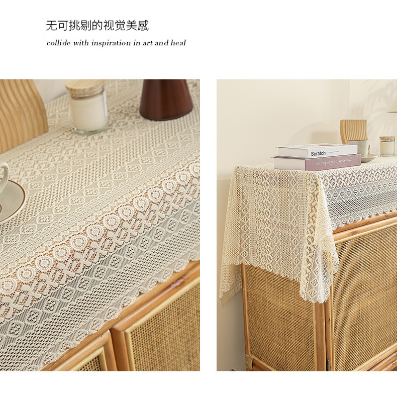 식탁보 프랑스 목가적 인 베이지 색 빈 레이스 크로 셰 직사각형 타블렛 커버 타월 사진 배경 직물 테이블 천