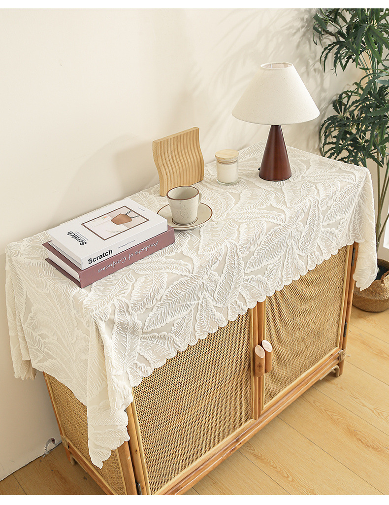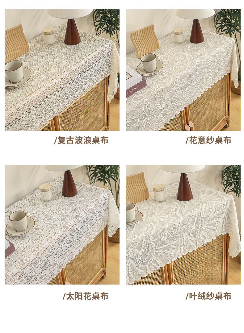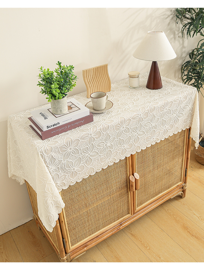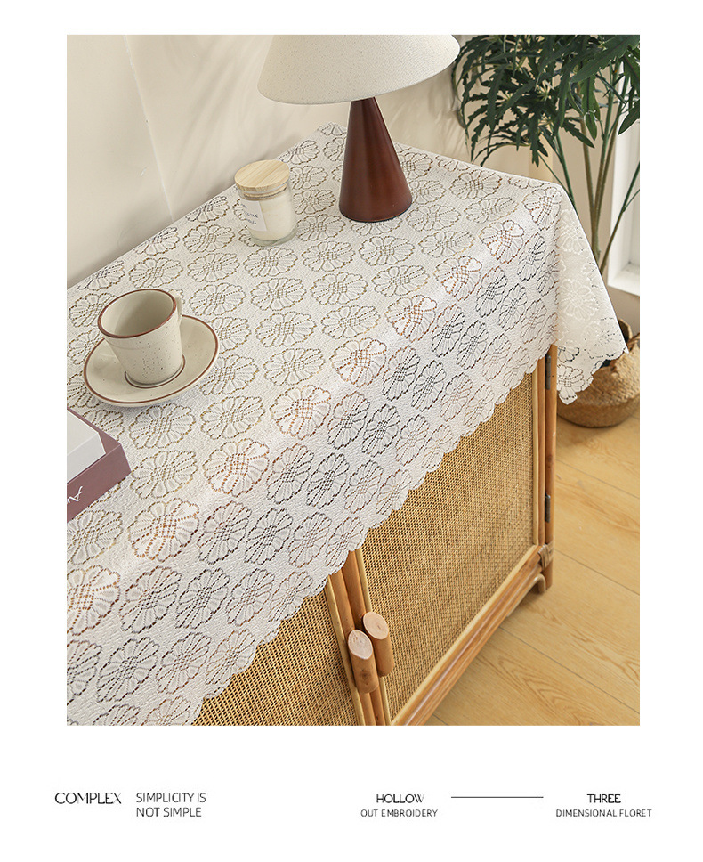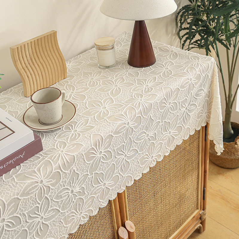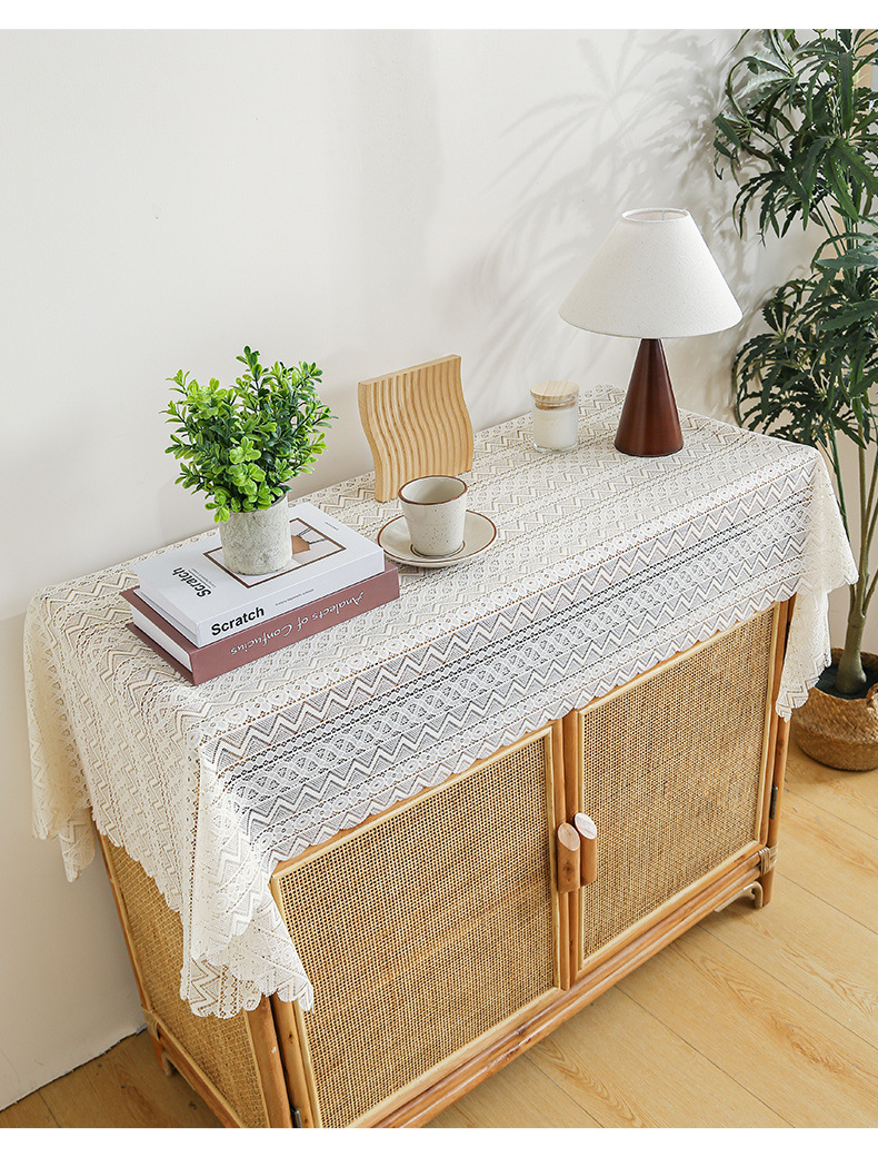 식탁보 프랑스 목가적 인 베이지 색 빈 레이스 크로 셰 직사각형 타블렛 커버 타월 사진 배경 직물 테이블 천