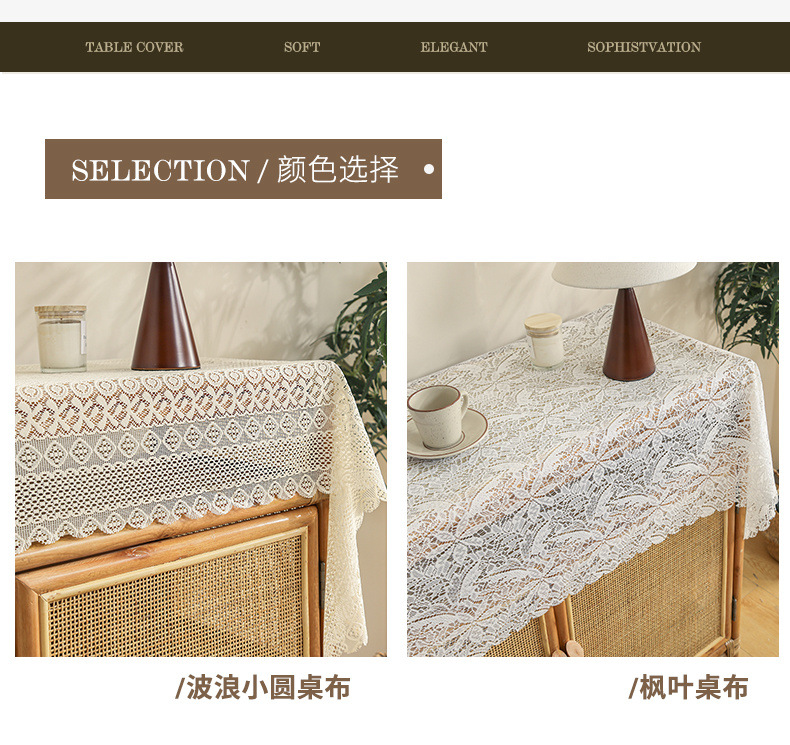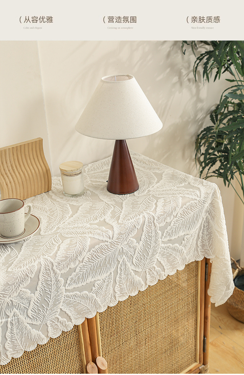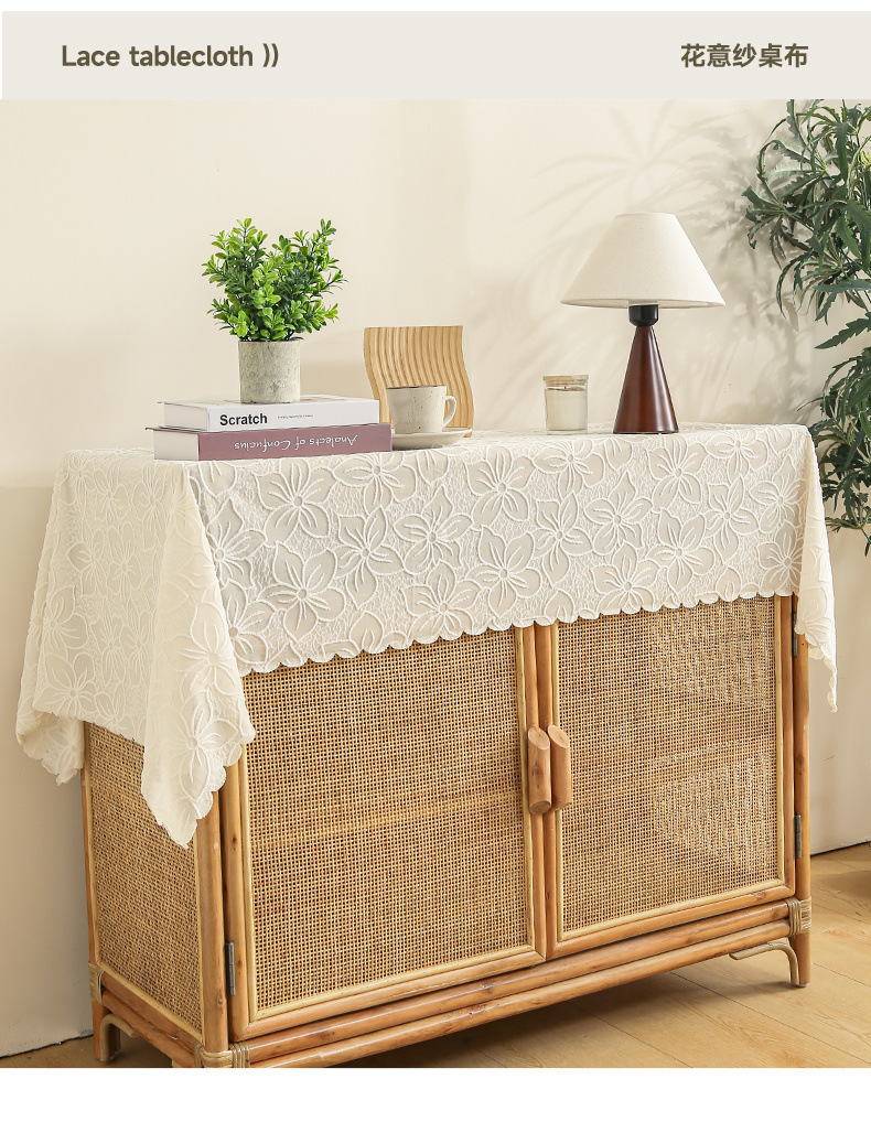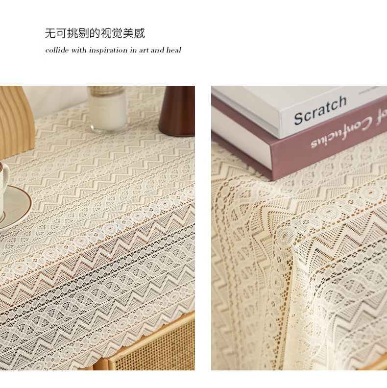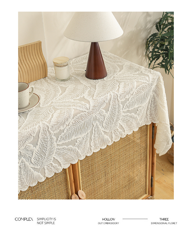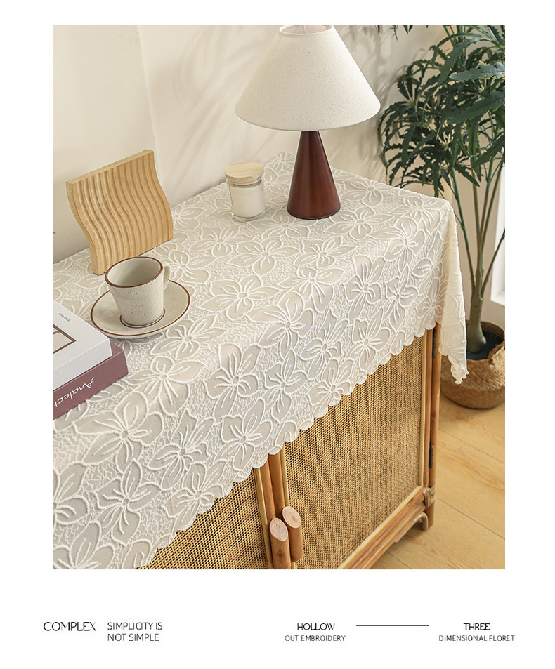 식탁보 프랑스 목가적 인 베이지 색 빈 레이스 크로 셰 직사각형 타블렛 커버 타월 사진 배경 직물 테이블 천